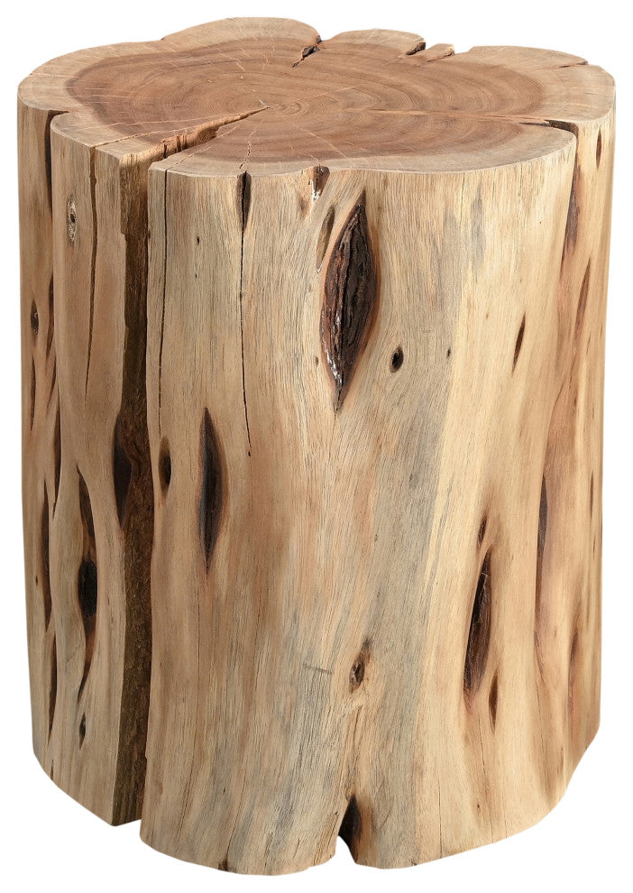 Finished in several wood tones, the Solid Wood Stump is a one-of-a-kind organic piece. Made from natural Acacia wood, each stump showcases its uniqueness; highlighting natural splits, color variations, and textures. Pair these stumps with their matching Brooks Dining Table and Buffet.