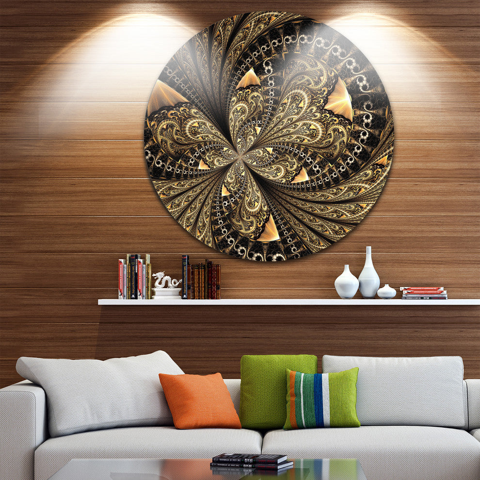 Bring Contemporary Abstraction to your home with this large Circle Metal wall art. This Brown Fractal Flower Pattern Digital Art Metal Artwork makes it the focal point of any room or office.