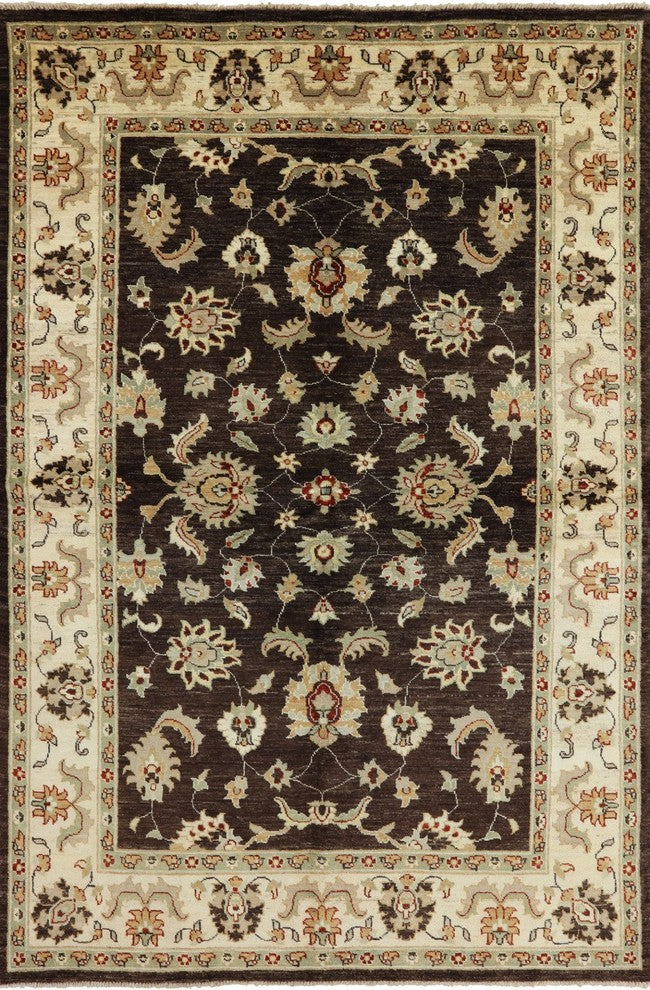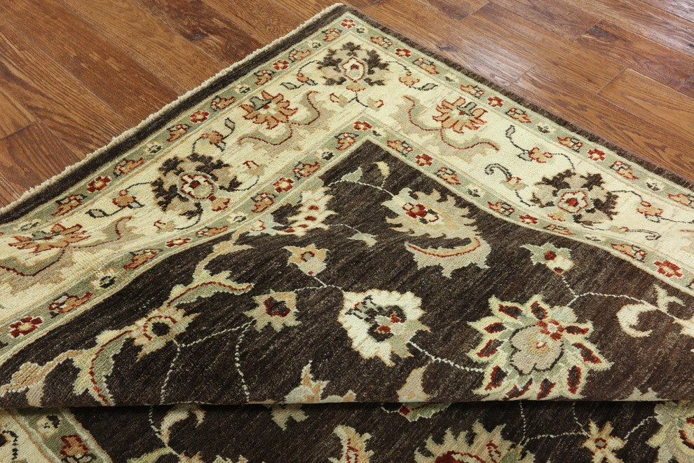 Brown Oushak Style Peshawar Quality Chobi Hand-Knotted Wool Rug, 6'x9'
