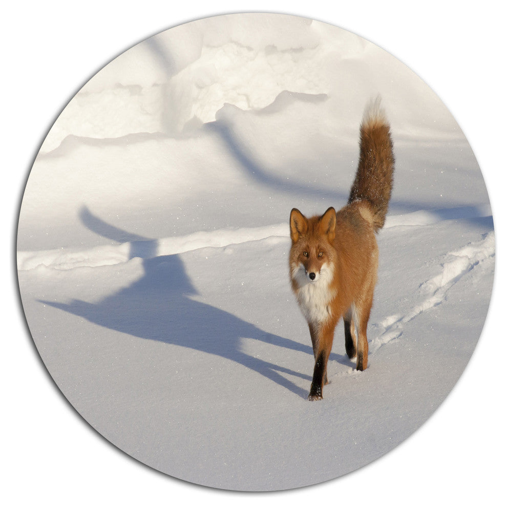Brown Winter Cat With Footprints, Animal Large Disc Metal Wall Art, 23"