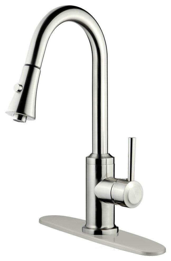 Brushed Nickel Finish Pull-Down Kitchen Faucet LK11B, 1 Hole, 3 Holes