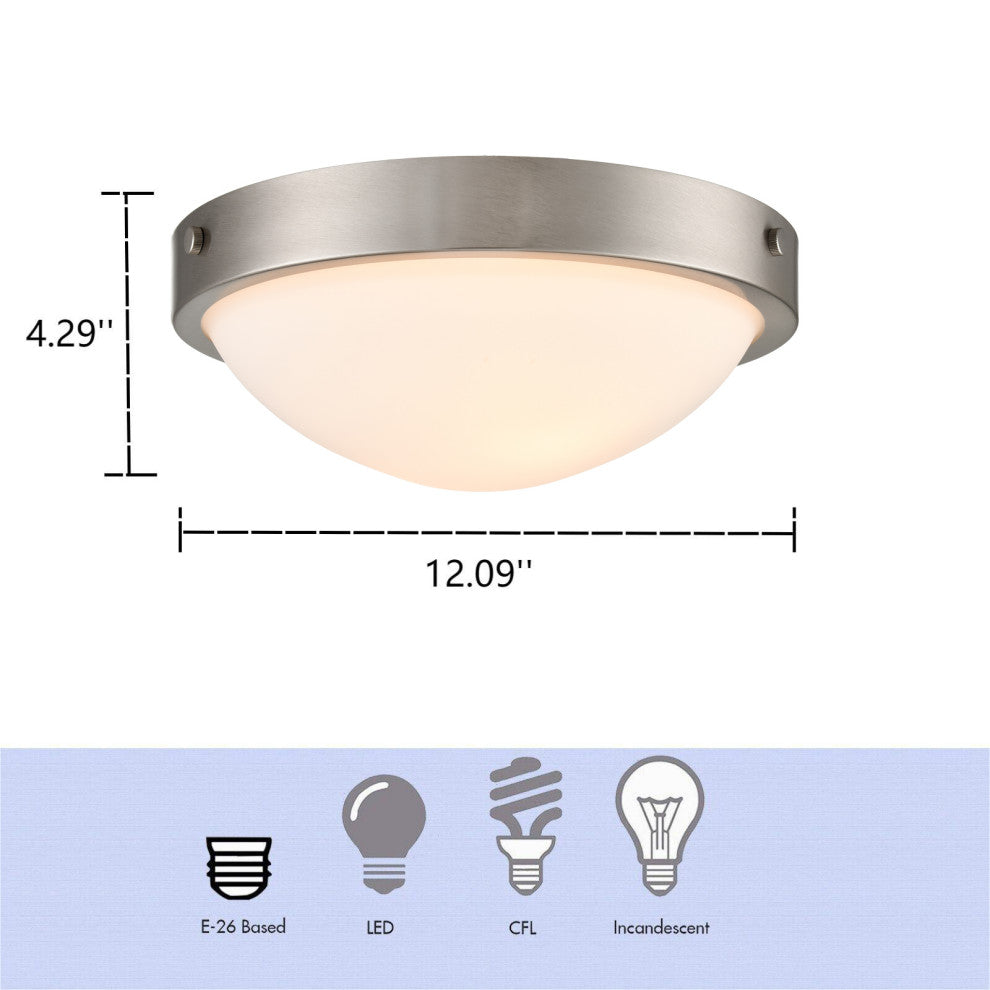 Brushed Nickel Flush Mount Ceiling Light With Milk Glass Shade