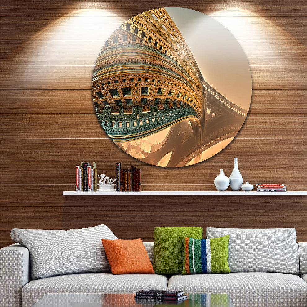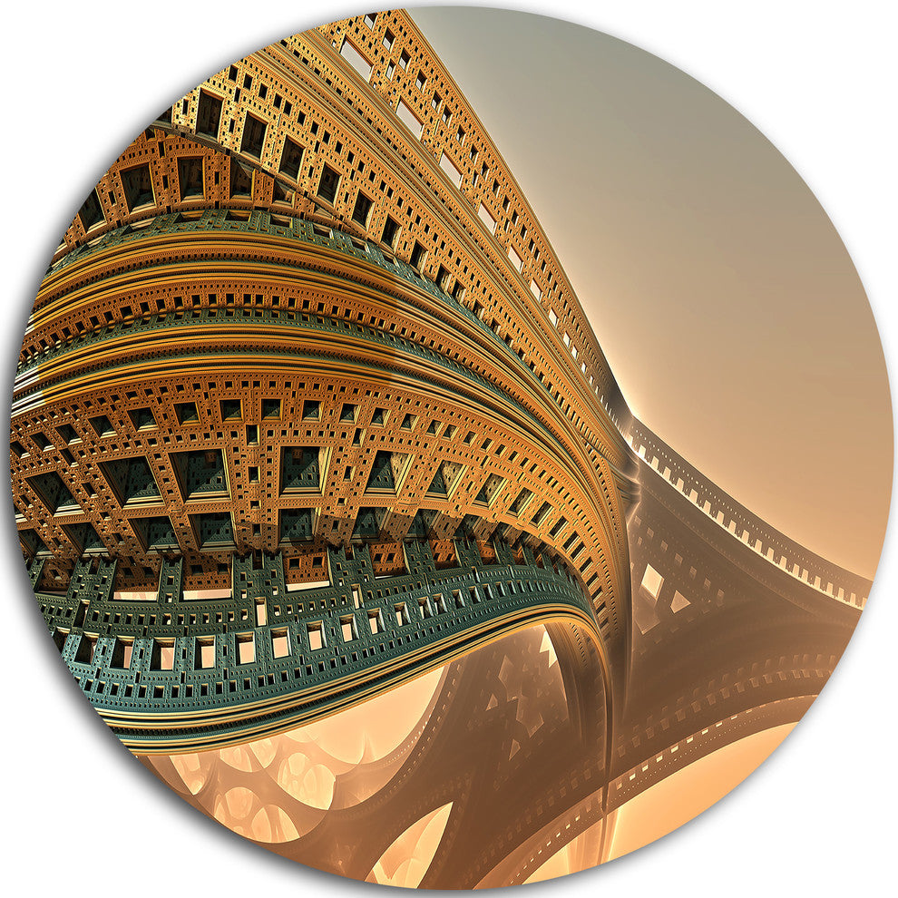 Bulgy Brown 3D Structure, Abstract Art Disc Metal Wall Art, 36"