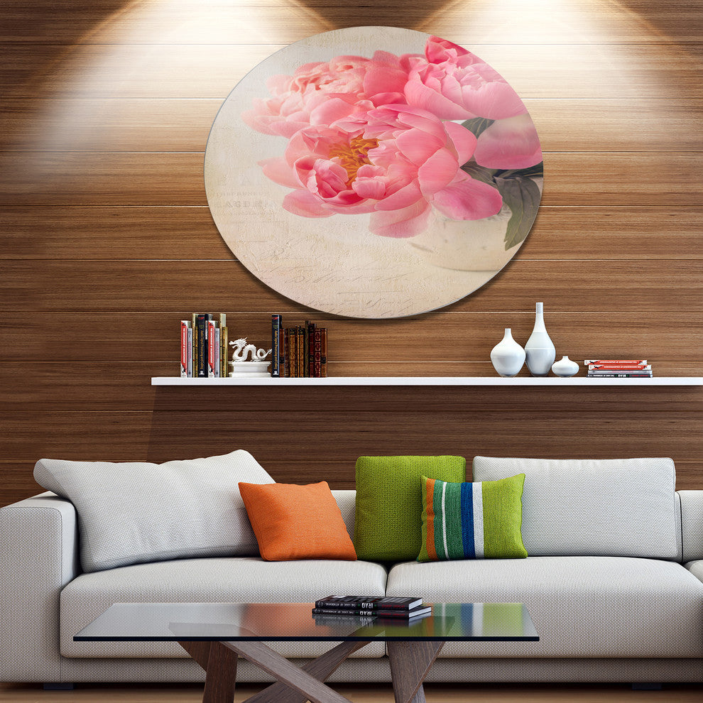 Bunch Of Colorful Peony Flowers, Floral Disc Metal Artwork, 23"