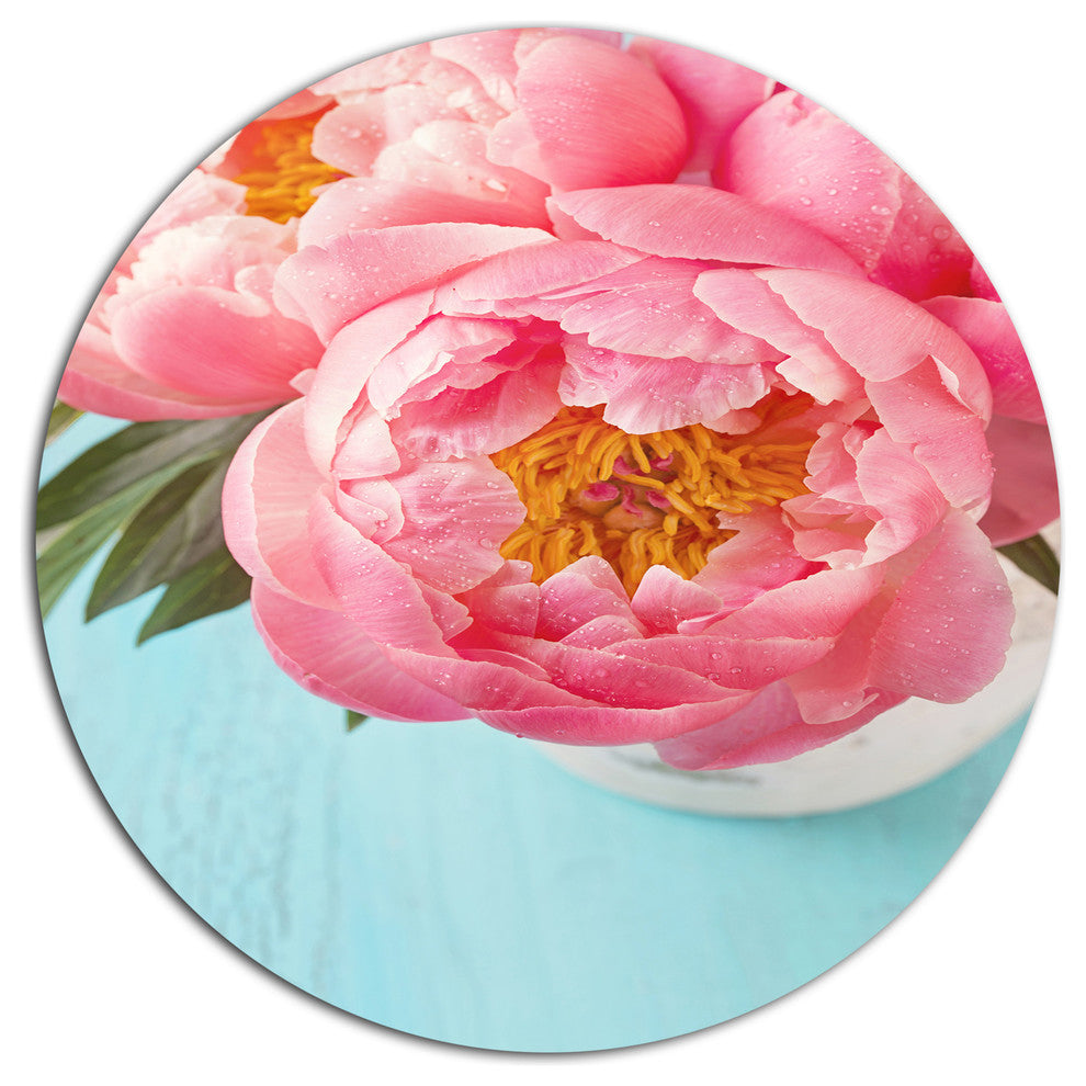 Bunch Of Light Pink Peony Flowers, Floral Large Disc Metal Artwork, 23"