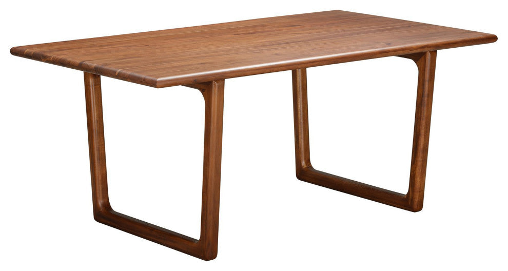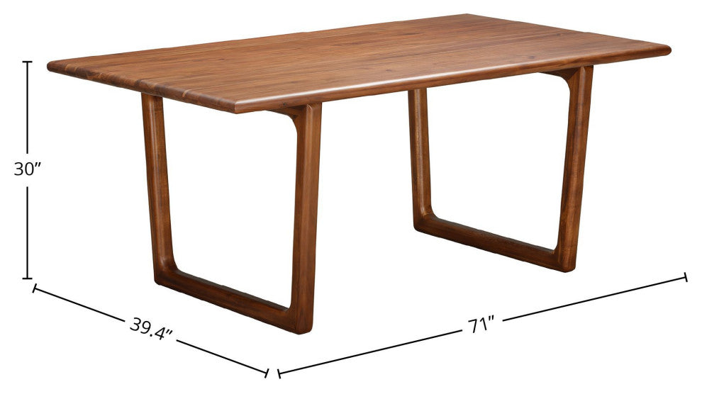The Bungalow 71" Solid Wood Dining Table features a distinct open-frame leg design, adding a modern, sculptural touch to its clean silhouette. Its smooth, rectangular tabletop highlights the natural beauty of solid wood, bringing warmth and character to any space. Built for durability, the solid wood construction ensures long-lasting strength and stability, making it ideal for everyday meals and gatherings. Perfect for dining rooms or open-concept living areas, this table blends effortlessly with a variety of styles.Features:•  Overall product dimensions are 71" W x 39.4" D x 30" H•  Table surface showcases natural wood grains•  Solid oak or acacia construction ensures long-lasting durability•  Sleek square legs provide a modern, structured look•  Available in multiple color variationsDimensions:Dining Table•  Assembled Product: 71 inches wide x 39.4 inches deep x 30 inches high•  Leg Height: 28 inches•  Weight Capacity: 220 poundsLH Home is a Vancouver based company that has been in business for over twenty years. We have successfully established a presence across North America as a key distributor of high quality furniture and decor. Our expert team of buyers are always working to expand our collections, ensuring we"™re ahead of the pack with the best product selection. A large majority of our products are produced with reclaimed FSC certified materials and recognized globally as environmentally friendly. Natural materials are what we love best, ranging from reclaimed timbers to natural stones and rattans.