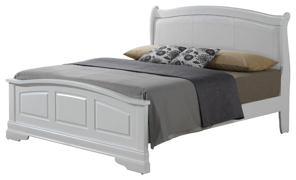 Graceful Curves and Soft Faux Leather Padding are Featured on thes Wood Panel Bed. Heavy Wood Trim and Quality Construction Make this a Great Value. Available in Twin, Full, Queen and King, it also can be ordered in Many Different Finishes. Matching Dressers, Chests, Nightstands and Mirrors are also Available.