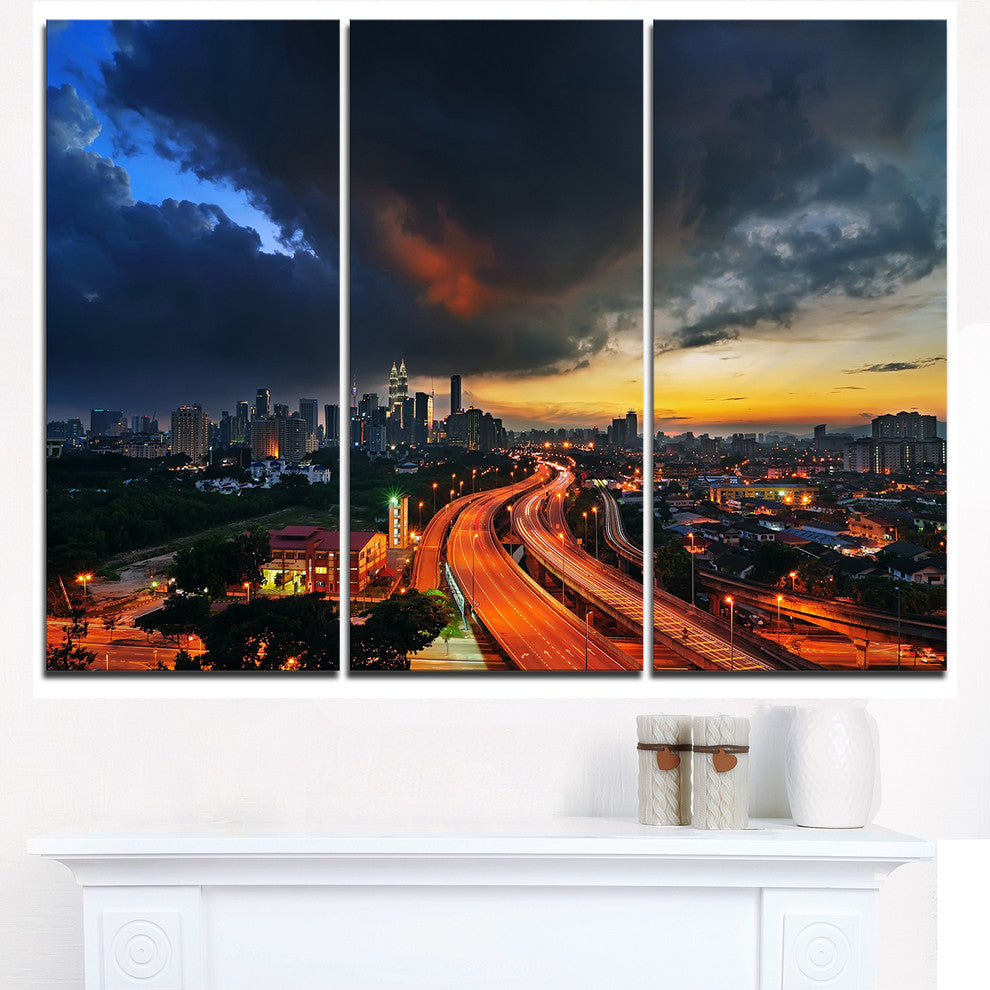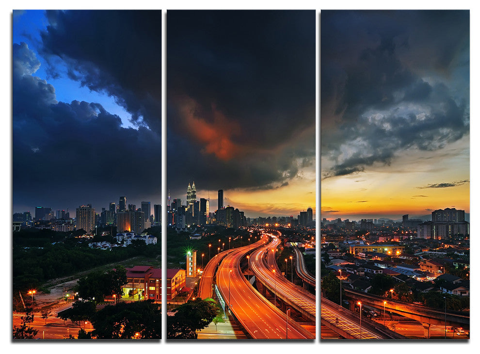 "Busy Elevated Highway in Kula Lumpur" Metal Wall Art, 3 Panels, 36"x28"