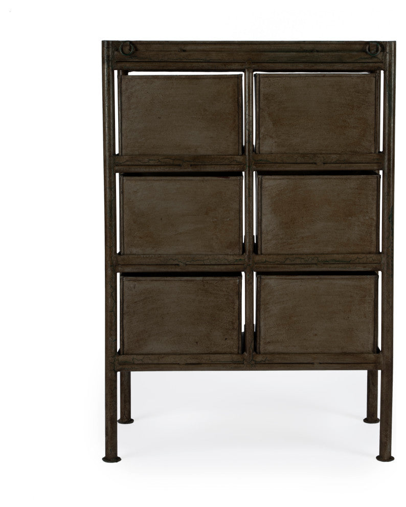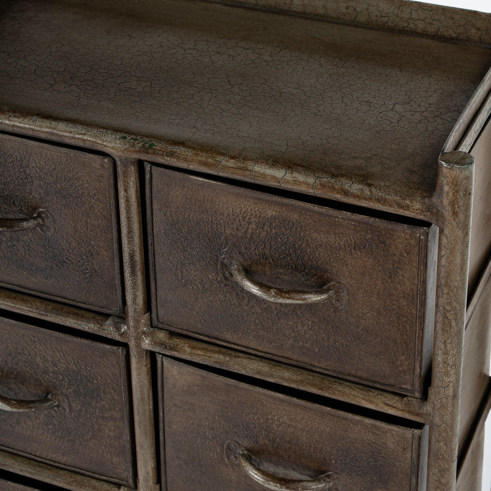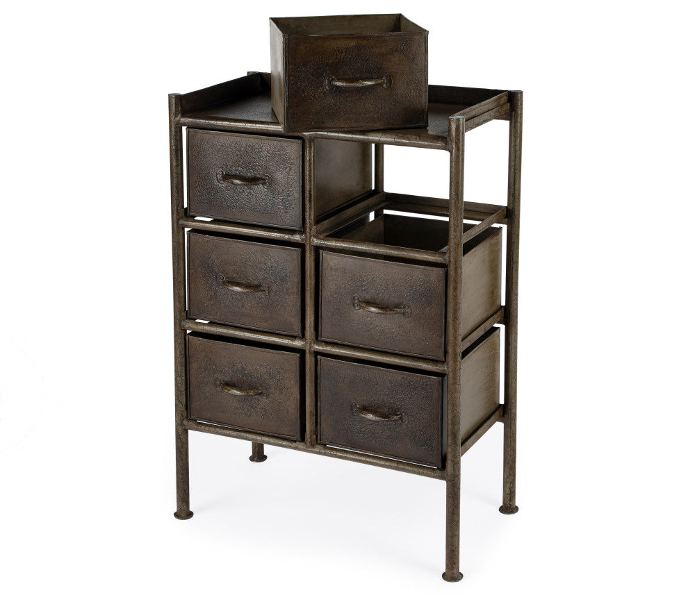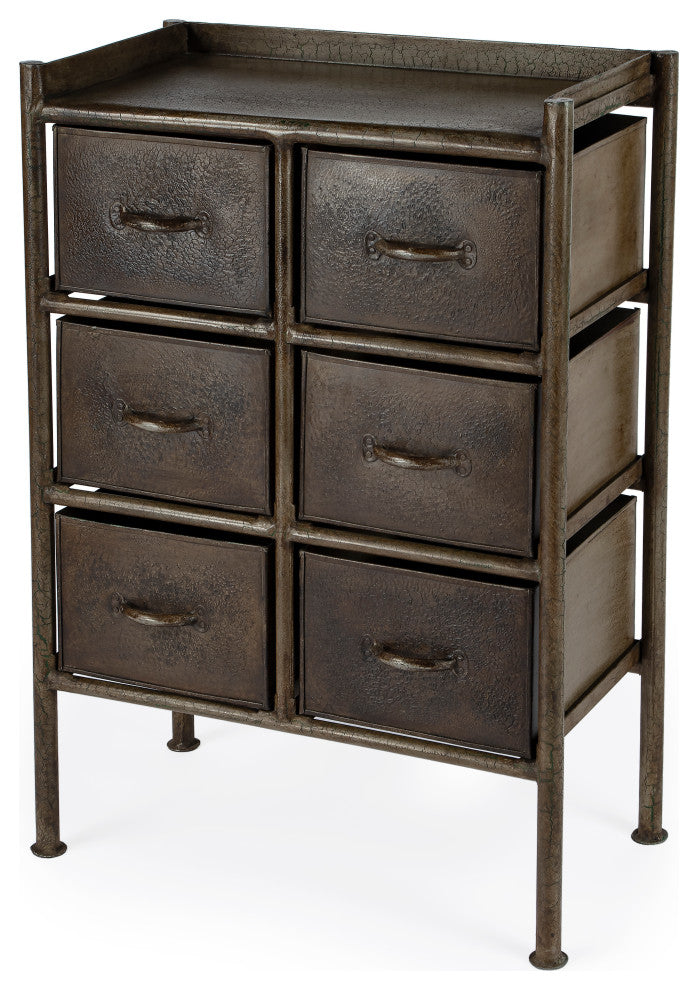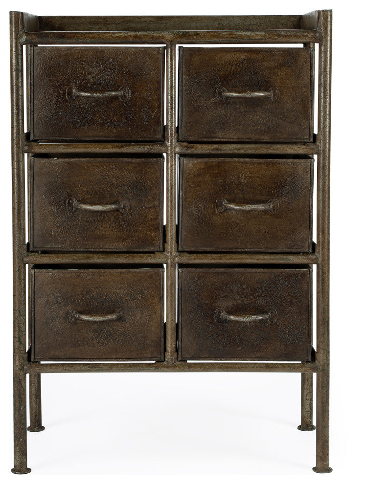 The Cameron chest is made entirely of iron. The industrial chic metalworks finish adds style to your space while the six pull out drawers offer ample storage to tuck away all your necessities. The crackle finish makes this chest seem as if it?s been part of your home for centuries.