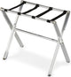 Materials Chrome plated metal tube cross bars with Mesh weaving straps and Acrylic cross legs; Foldable and packs assembled; Stress tested fo 35 kg luggage maximum weight.