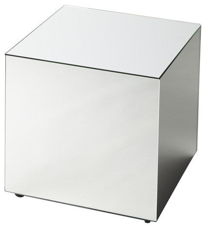 Used alone or bunched together in multiples, this mirrored cube is sure to be the glamorous focal point of your space. Crafted from wood solids and wood products, its clear mirrored glass panels will reflect the beauty all around. Additional Product Information: Collection: Emerson Style: Modern Product Dimensions: 15-3/4"w, 15-3/4"d, 16-1/2"h Material: Mirrored Glass, Mdf, Plywood Finish: Mirror Color: Clear Shape : Square Country: India