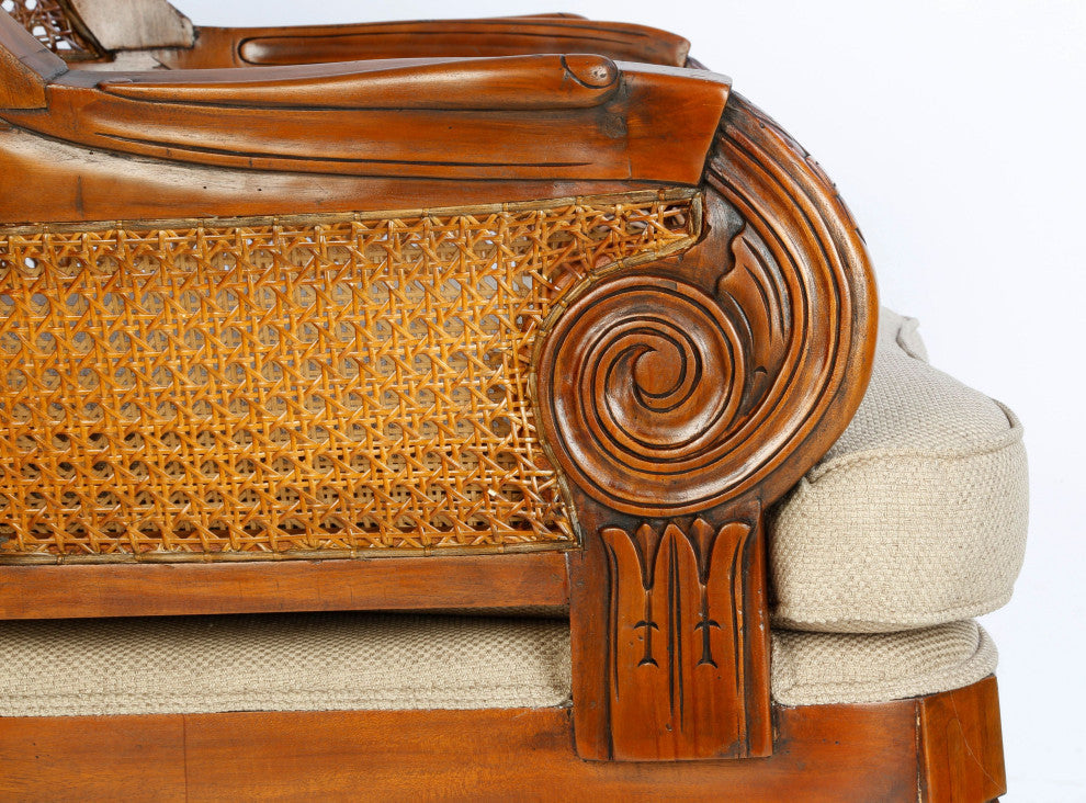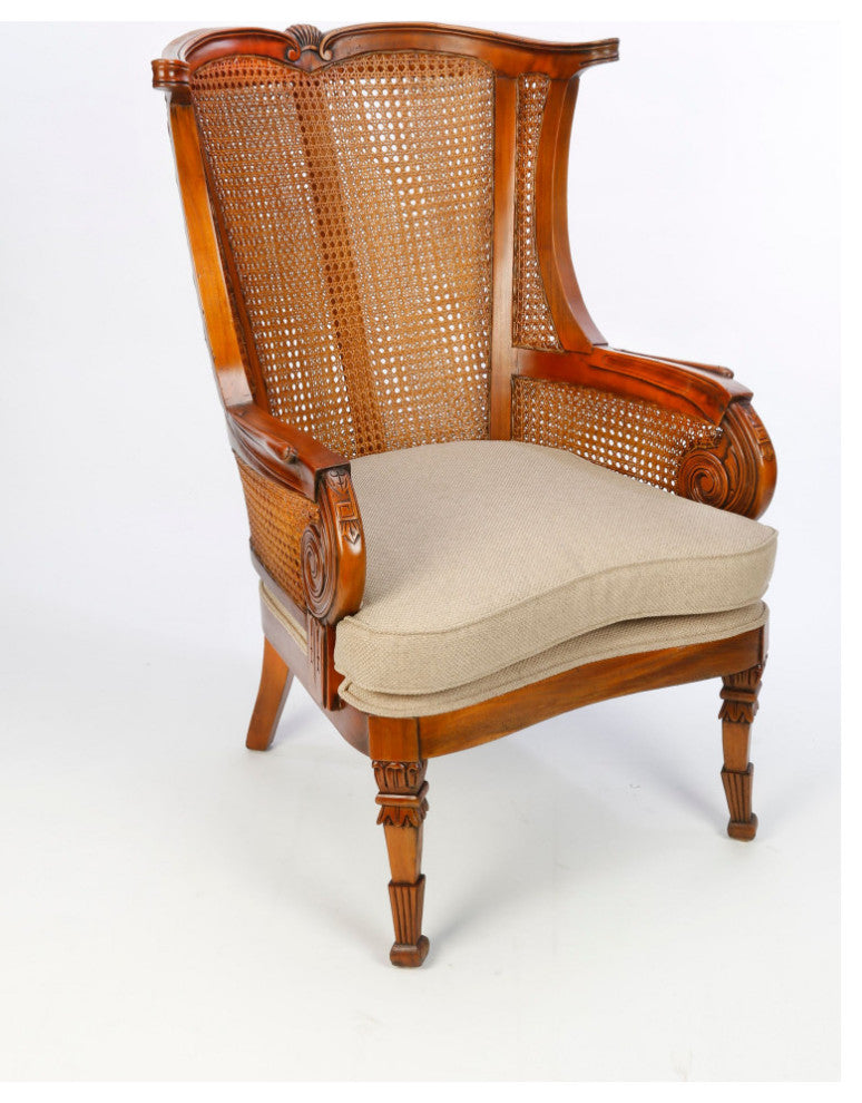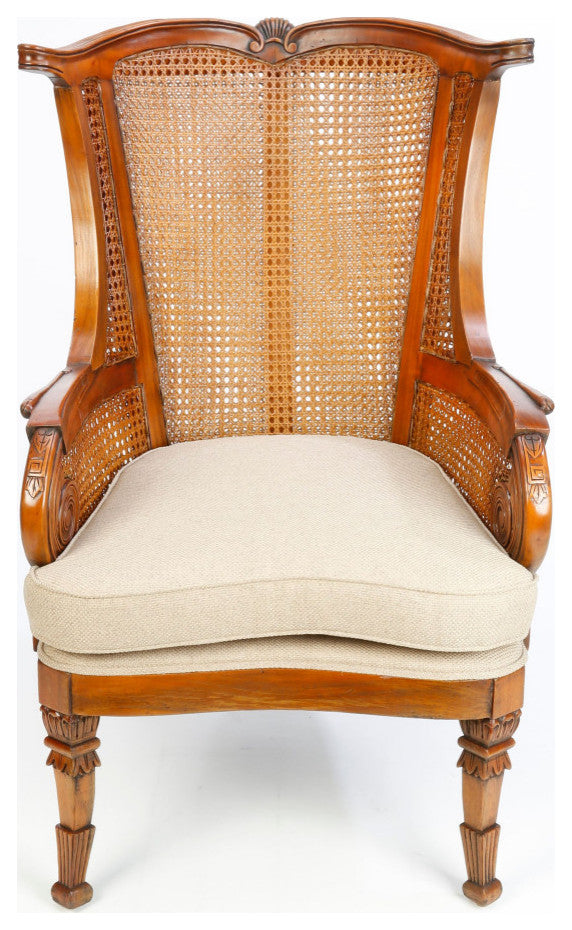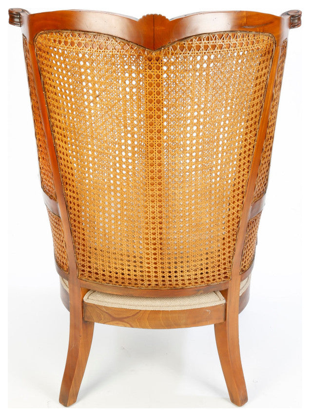 Bring a classic touch into your space with the Cabe Wingback Chair and Ottoman. It combines wingback and rattan back details that makes for a great accent piece for your homes. With a plush linen seat and a solid mahogany framing, the chair definitely enhances the visual aesthetic of your spaces. This is perfect to place in front of the fireplace or bedrooms as it assures comfortable lounging.Features:Overall product dimensions are 28.5" W x 35" D x 48" HFraming is made from solid mahogany woodSports a wingback design reminiscent of classic furniture piecesPlush linen seat that exudes a casual, relaxed vibeDouble rattan details for the backrest designDimensions:Accent ChairAssembled Product: 28.5 inches wide x 35 inches deep x 48 inches highWeight Capacity: 250 pounds