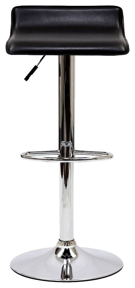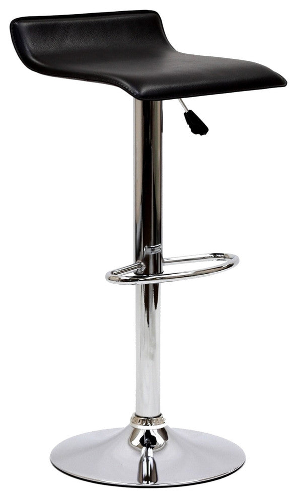 COLORS & MATERIALS: These cafe chairs are smartly engineered with a chrome-plated steel disc base and footrest, high density foam seat, and easy-to-clean vinyl upholstery available in either black, red, or white.SPECIAL FEATURES: Hydraulic Adjustable HeightCERTIFICATIONS & WARRANTY: These Cafe Tables and Chairs are warranted by the manufacturer for (1) year to be free of defects and materials in workmanship. Products are NOT warranted against regular wear and tear, nor are said to be of fitness for a particular use.SHIPPING: Our cafe tables and chairs include FREE SHIPPING right to your door/threshold via FedEx Home Delivery trucks equipped with a lift gate (platform on the back of the truck that works like an elevator). Driver will bring your order to the doorway (no stairs included), but not inside the main entrance of delivery location."Gustav" tall bar chairs are well crafted for both commercial and/or home entertaining. Sleek, slim & modern, these adjustable bar height stools will catch your eye and capture your heart. Sit down, kick your heels off, loosen your tie. It''s Happy Hour! These cafe chairs come with assembly instructions including pictures, making product assembly manageable for relatively handy consumers. Confirm you have all the parts and hardware before you begin, and do not throw away any packaging until you have completed the assembly. We recommend building on carpet or protected floors to avoid scratches. • • •  ASSEMBLED DIMENSIONS: 15"W x 16"D x 25,5-33,5"H • • •  SEAT DIMENSIONS 12"L x 22.5 - 30.5"H • • •  BACKREST DIMENSIONS: 1/2"W x 2.5"H • • •  CUSHION THICHKNESS 1/2"H • • •  BASE DIMENSIONS 16"L x 15"W • • •  1 (up to 2 items in a box); 25x25x13; 12lbs PER ITEM