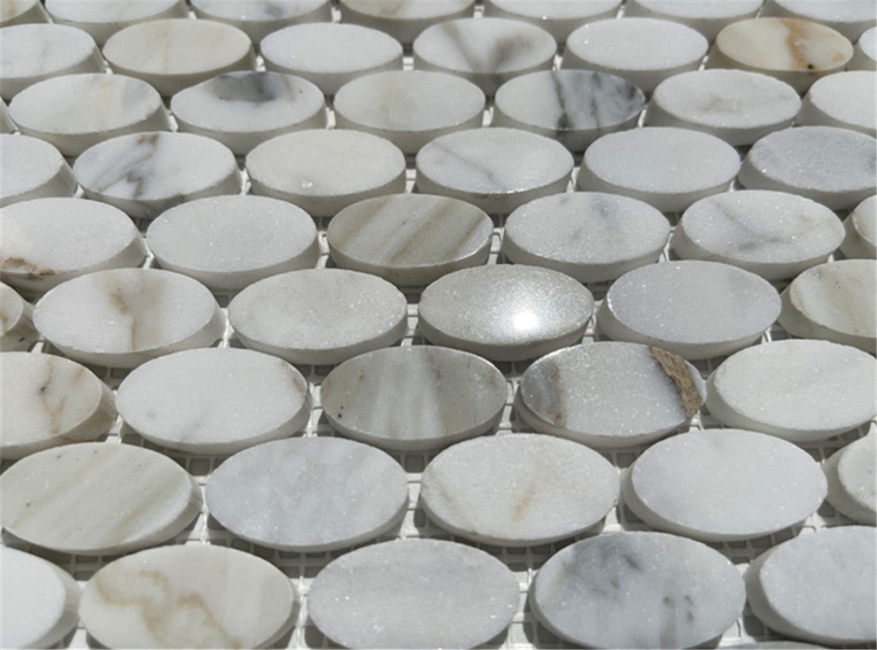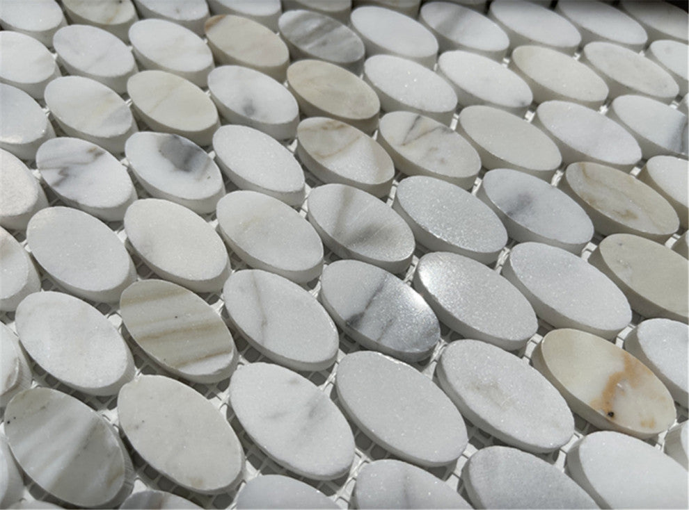 Calacatta Gold Calcutta Marble Ellipse Oval Mosaic Tile Polished, 1 sheet