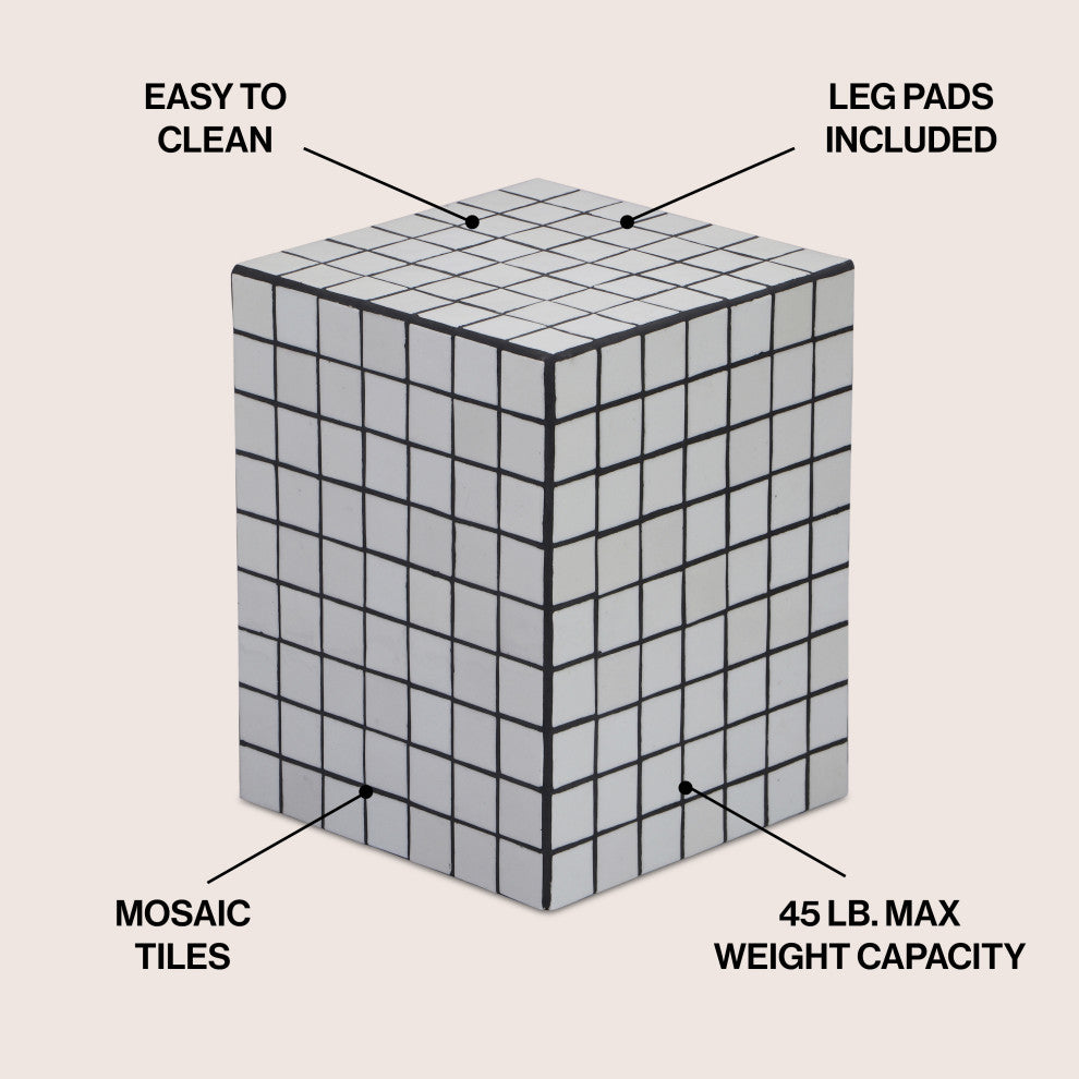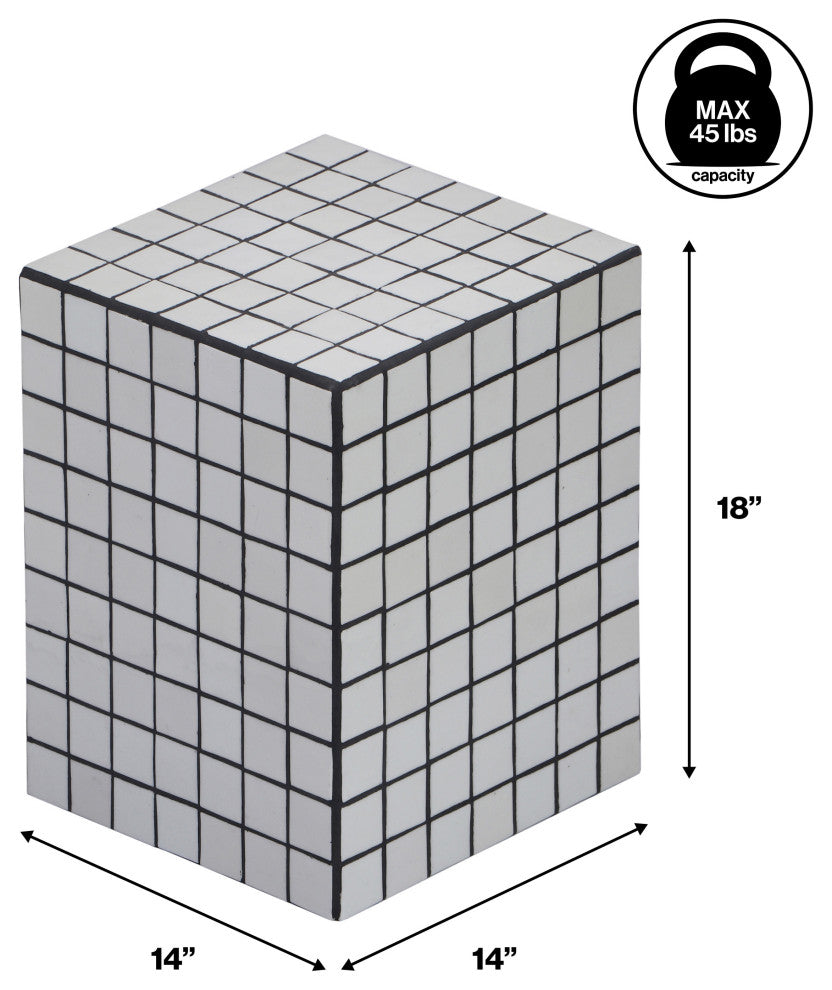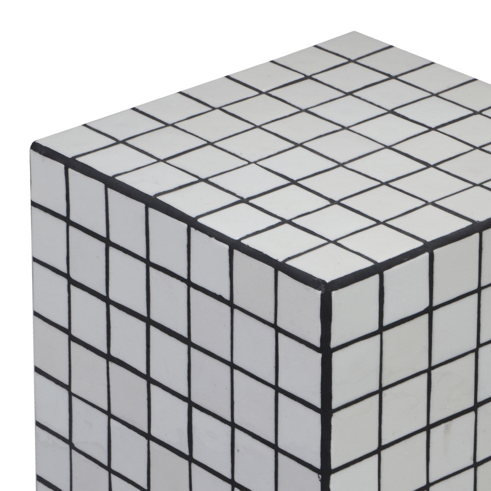 Embrace Maximalism with our modern, Bohemian-chic checkerboard accent table. The sturdy MDF cube is finished with 2" ceramic tiles. Use this versatile accent as a nightstand, or a pedestal for your favorite plant.Features:• Classic white tiles and black caulk lines add Art Deco style to any space• At just 18" tall, this transitional table is the ideal height beside the arm of a chair• This versatile table''s square design works almost anywhere, from a coastal cottage to a modern studio• Each piece is unique and may have slight differences from the photo• Handmade with care by skilled artisans• 0Furniture Care:You see a common piece of furniture.We see a piece that makes outdoor spaces feel more like home.The sanded wood casts a smooth touch on the skin. Derived from durable wood, the JONATHAN Y Outdoor Furniture collection is endowed with the finest quality outdoor tables and chairs. Our vast collection of outdoor furniture fits in both classic and modern outdoor spaces, all in the artful favor of achieving the sought-after relaxing feeling. Along with affordable prices, we''ve transformed a fundamental resting instrument into a stylish addition for outdoor events and gatherings.JONATHAN Y Outdoor Furniture - the resting place of fashionable outdoor art.