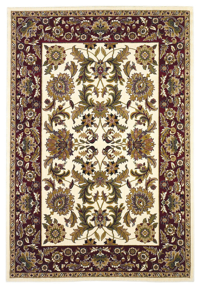 Cambridge 7303 Ivory/Red Kashan 7''7"x10''10". Machine-Made of 100% Heat-set Polypropelene with No Backing. Made in China. Vacuum regularly & spot clean stains. Professional cleaning recommended periodically.