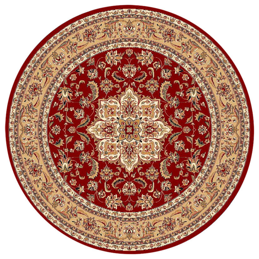 Cambridge 7326 Red/Beige Kashan Medallion 7''7" Round. Machine-Made of 100% Heat-set Polypropelene with No Backing. Made in China. Vacuum regularly & spot clean stains. Professional cleaning recommended periodically.
