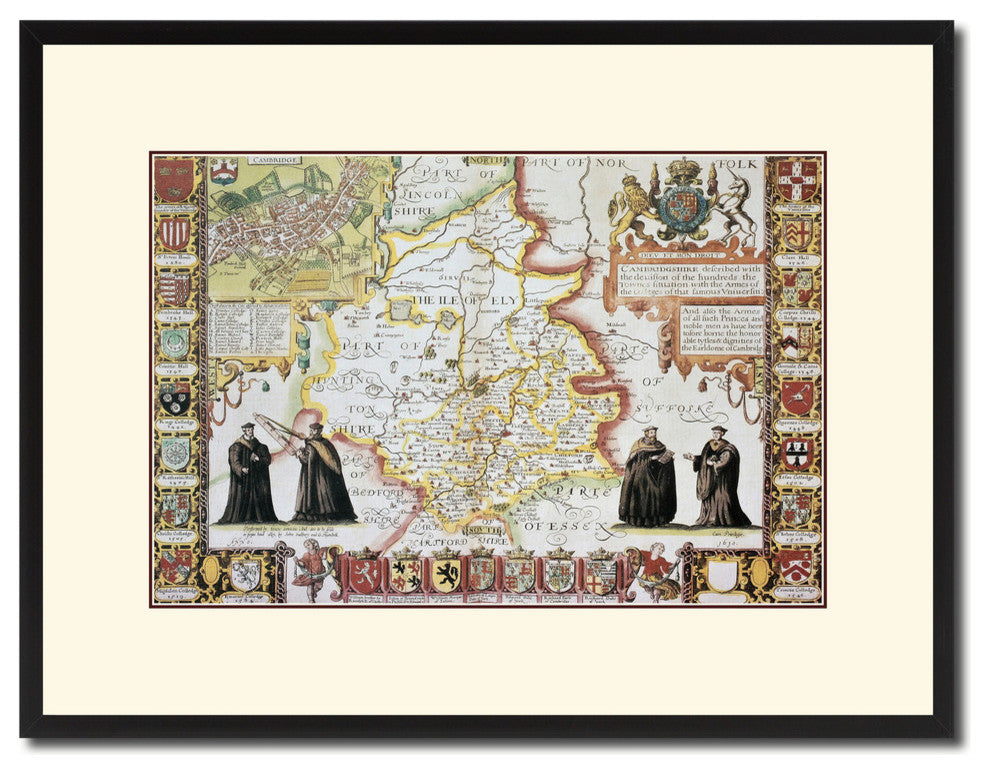 Cambridge Shire Vintage Map Print On Canvas With Picture Frame 16" X 21"