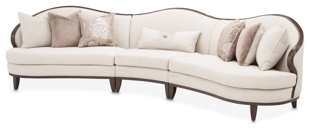 Create a space for comfort and connection with the Camellia Field Sectional Sofa. Upholstered in luxurious chenille, its curved design offers ample seating, making it the perfect centerpiece for gatherings. Complete with decorative accent pillows in complementary textures and tones, this sectional combines elegance with everyday practicality.