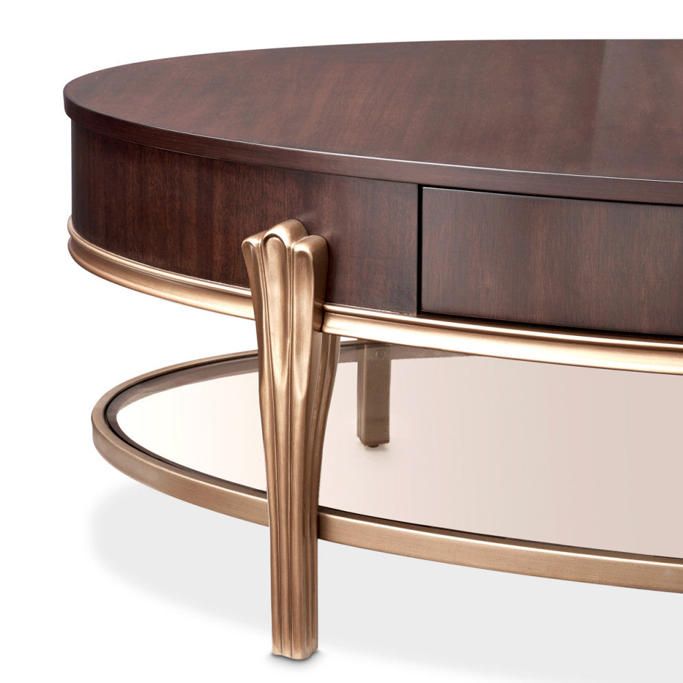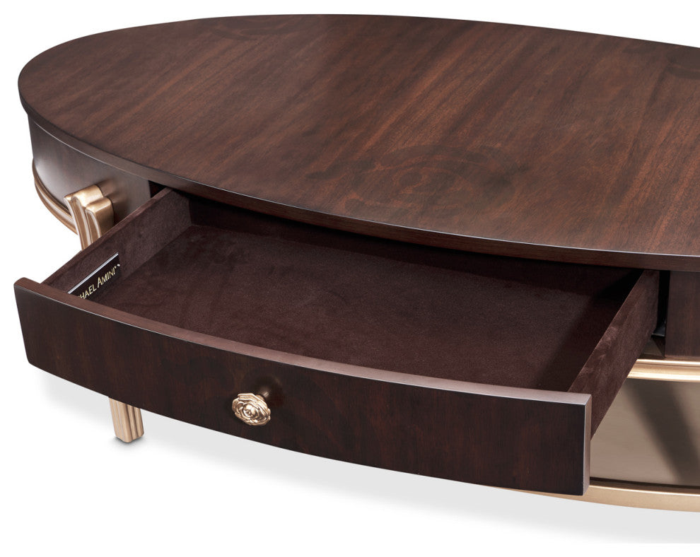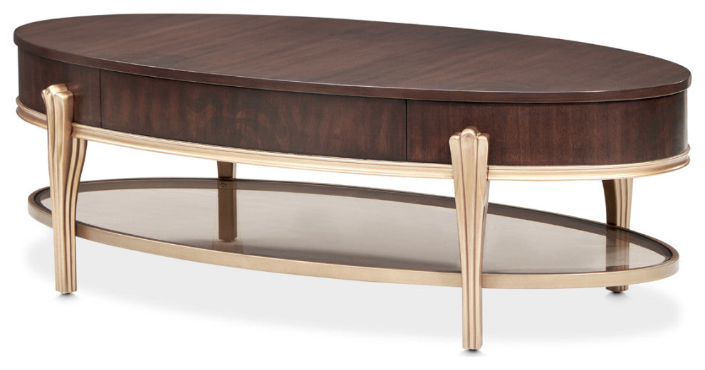 Camellia Field Oval Cocktail Table, Warm Pecan