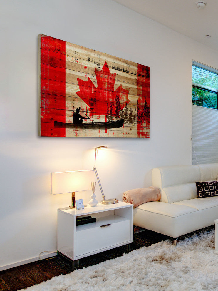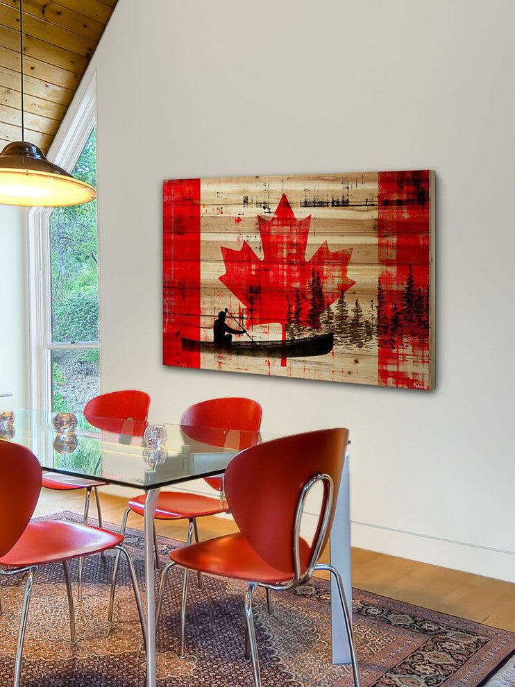 Striking and unique, the "Canadian Canoe" Print on Natural Pine Wood by Parvez Taj will bring your walls to life. Printed on natural pine wood, this 36 inch wide by 24 inch tall contemporary artwork will make a statement in any living room, dining room, or bedroom.- Fine art print on natural pine by Parvez Taj- wood pieces are hand-selected by Fine craftsmen for printing- Arrives ready to hang- Includes a certificate of authenticity- Artist signature on the front