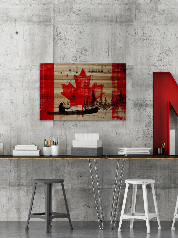 "Canadian Canoe" Print on Natural Pine Wood, 36"x24"