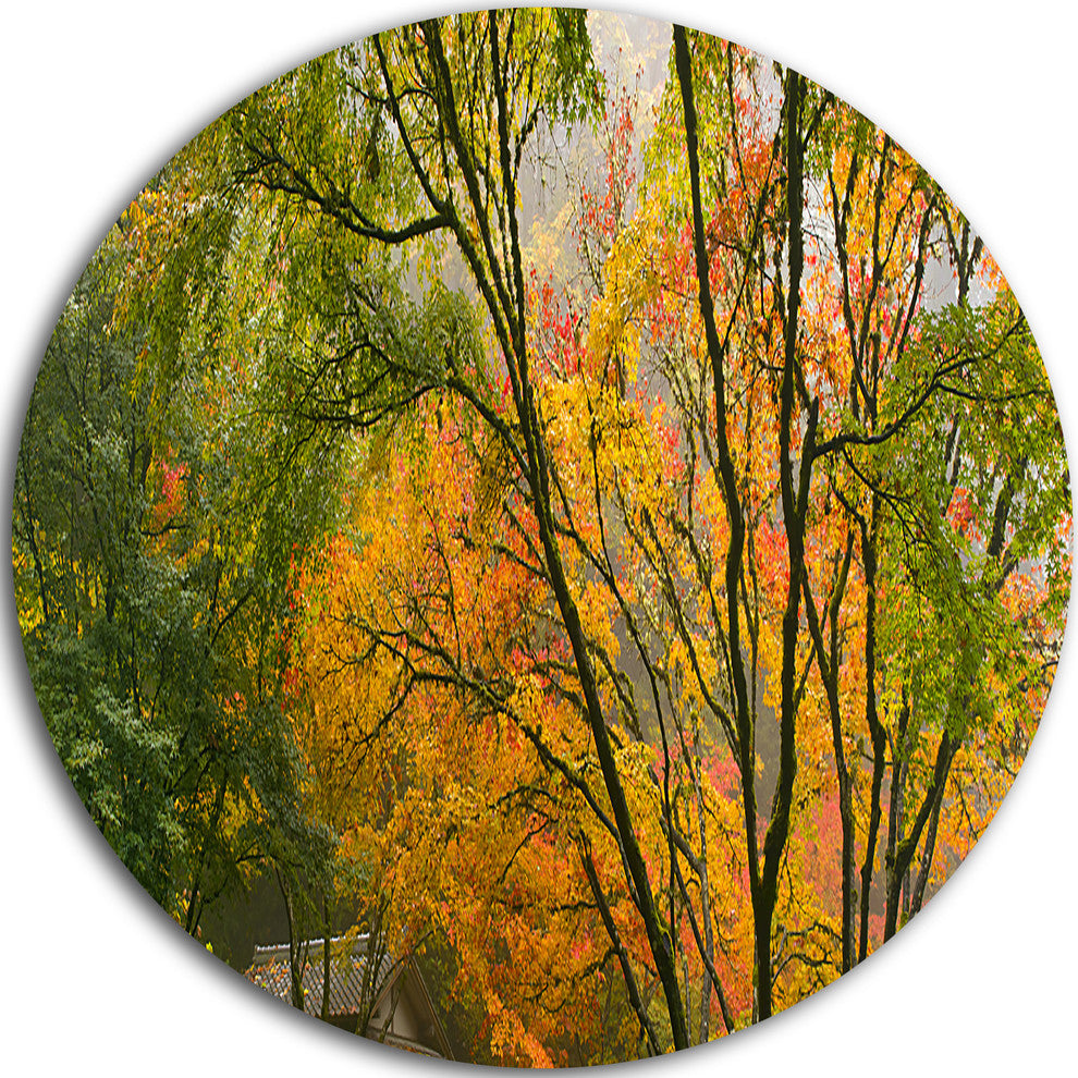 Canopy Of Maple Trees In Fall, Floral Photo Round Wall Art, 11"