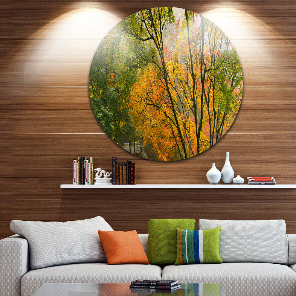 Canopy Of Maple Trees In Fall, Floral Photo Round Wall Art, 36"