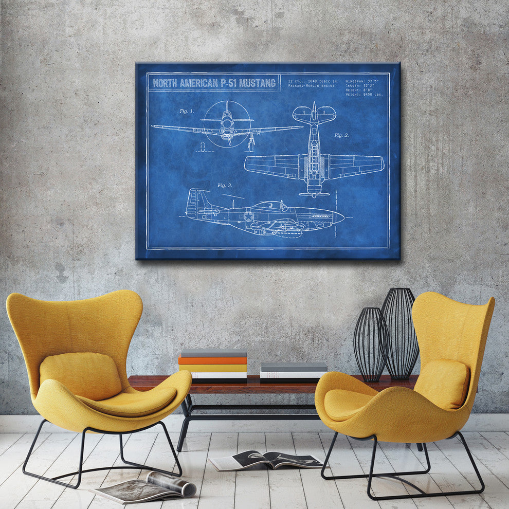 Bring a touch of Aero Industry to your Wall Decor, with Ready2HangArt ''North American P-51 Blueprint'' Canvas Art by Dorothea Taylor. Made in the USA, this Wall Art is produced on water resistant canvas, coated with a UV-Resistant gloss, and wrapped on a wood frame with hardware Ready-to-Hang on your wall.