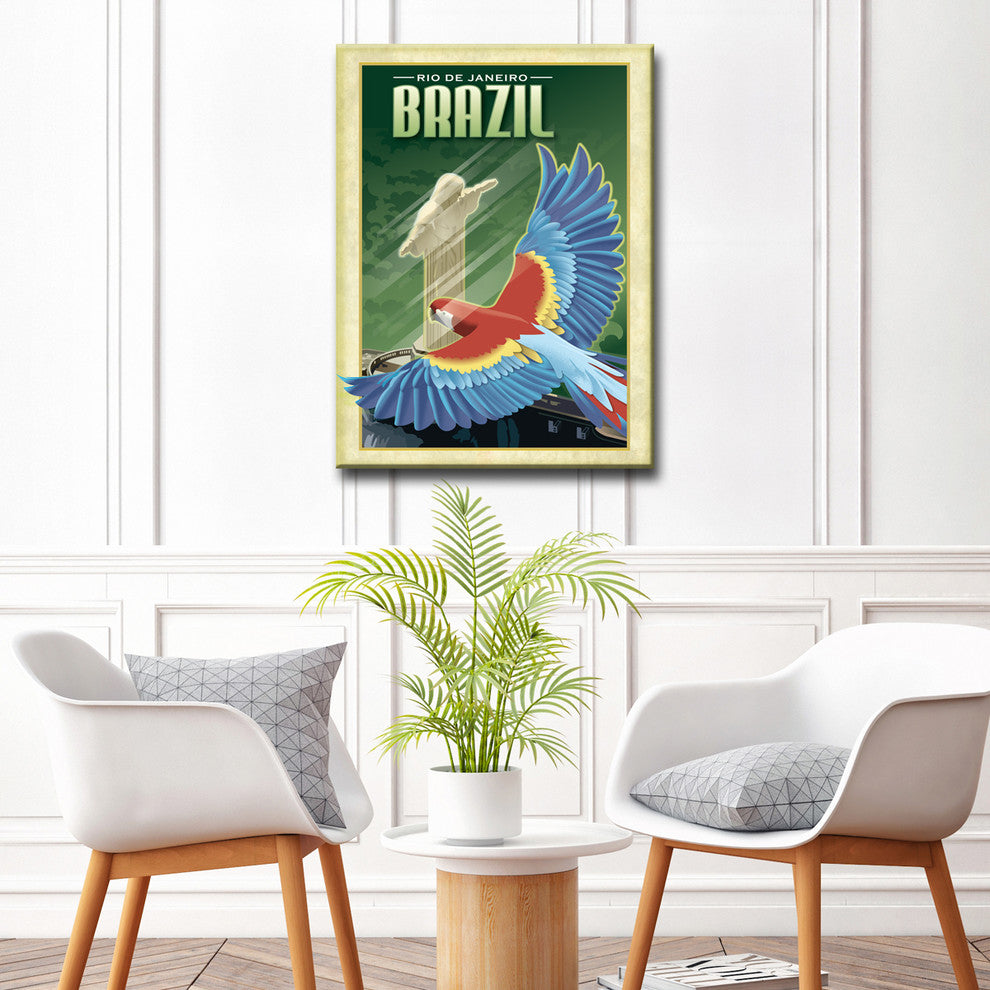 Bring culture to your Wall Decor, with Ready2HangArt Travel Poster inspired Canvas Art ''Rio de Janeiro - Brazil'' by Dorothea Taylor. Made in the USA, this Wall Art is produced on water resistant canvas, coated with a UV-Resistant gloss, and wrapped on a wood frame with hardware Ready-to-Hang on your wall.