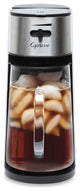 This innovative Capresso Iced Tea Maker quickly hot brews your favorite tea or coffee, which can then quickly be chilled in the refrigerator. Adjust the brew strength and try adding fresh or frozen fruit to create your perfect refreshing drink. Iced tea maker Can brew loose-leaf or bagged tea, as well as coffee.Highlights:• Material: Glass• Dimensions: 13-1/2"H x 6-1/4"W x 6-3/4"L• Watts/Volts/Hertz: 725W/120V/60Hz• 80 oz. (2.5 qt.) glass pitcher with removable lid and an easy pour spout• Flavor enhancer adjusts brew strength from mild to strong taste• Removable permanent filter for loose tea or tea bags• Dishwasher safe glass pitcher, permanent filter and removable filter basket• Removable water tank for easy filling and cleaning• Automatic shut off• Fresh or frozen fruit can be added to the pitcher for delicious gourmet beverages• The pitcher comes with a handy lid for easy storage directly in the refrigerator• Can also be used to prepare iced coffee• UL listedIncludes:• Glass pitcher• Permanent filter• Color recipe booklet