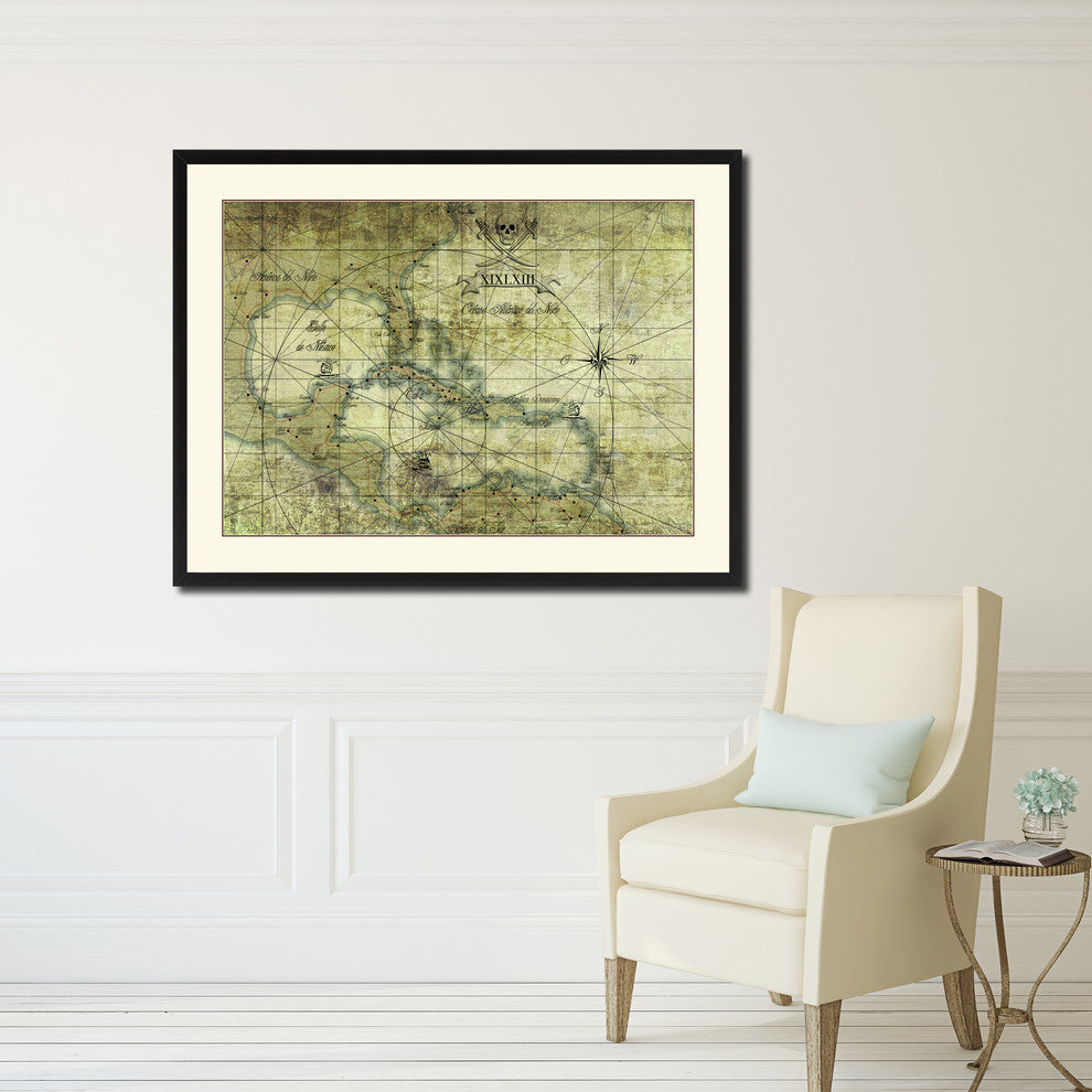 Caribbean Vintage Map Print On Canvas With Picture Frame 16" X 21"