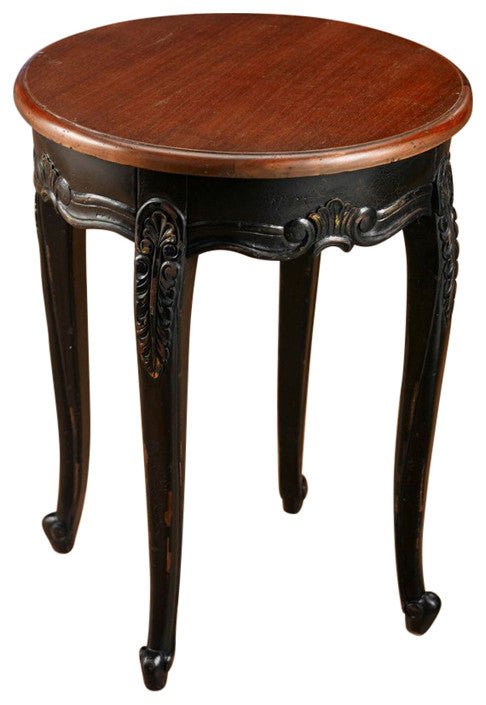 Complete your living room set with the Carina End Table. The simple yet traditional look of this piece easily complements your sofa and armchairs. The end table stands on classic cabriole legs and it matches any aesthetic from antique, rustic, and traditional style homes. Constructed from solid wood with hand carved details.Features:Overall product dimensions are 20" W x 20" D x 27" HMade from solid wood construction for durabilityDisplays a round shape to accommodate various itemsStands on classic cabriole legs for sturdiness and strengthAvailable in multiple color variationsDimensions:End TableAssembled Product: 20 inches wide x 20 inches deep x 27 inches high.