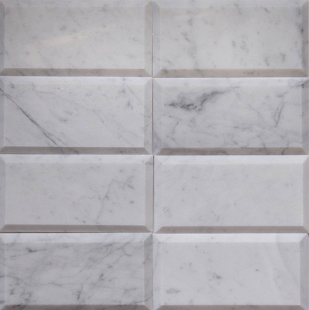 Carrara White Marble Field Tile, Deep Beveled, Polished, Sample