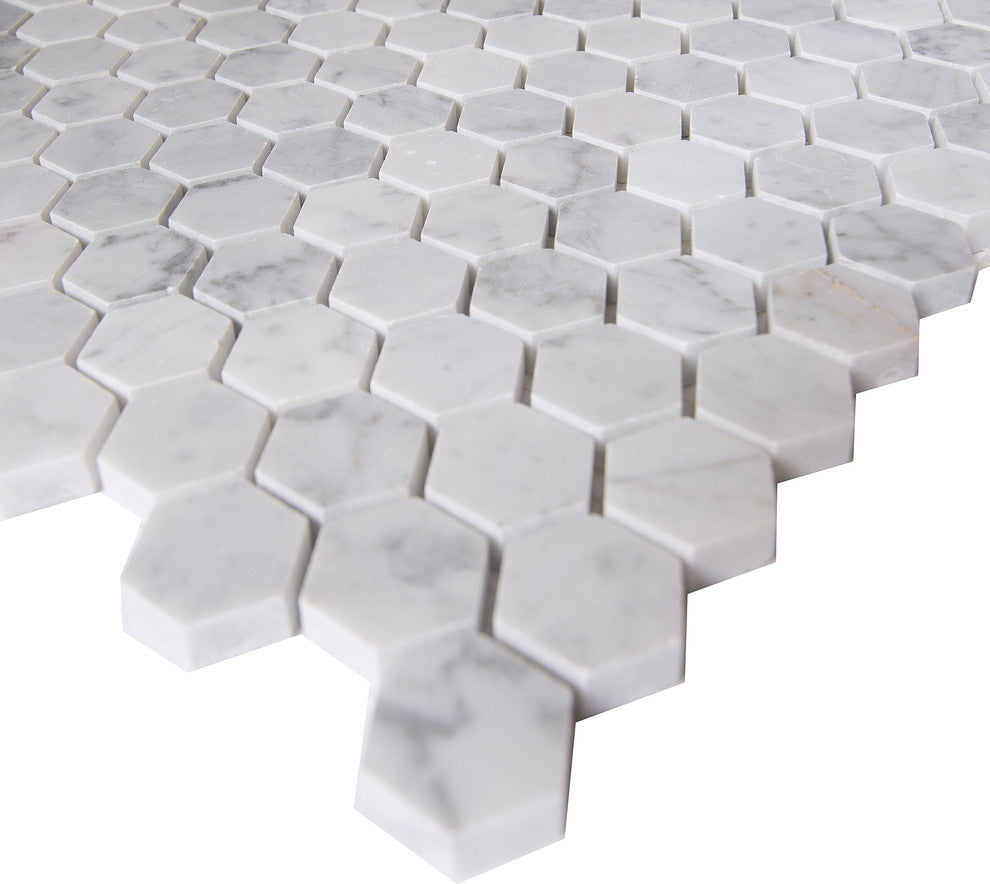 Carrara White Marble Mosaic Tile, Hexagon, Polished, Sample