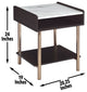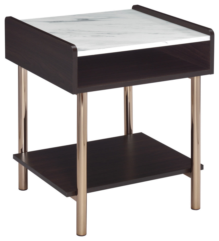 Enjoy the look of practical elegance with this classically styled End Table. Faux marble and faux walnut tops combine in Mid-Century Modern style for a Side Table that looks great in a Living Room or Bedroom as a Nightstand. Open storage offer a great place for remotes or other items while looking really sharp.
