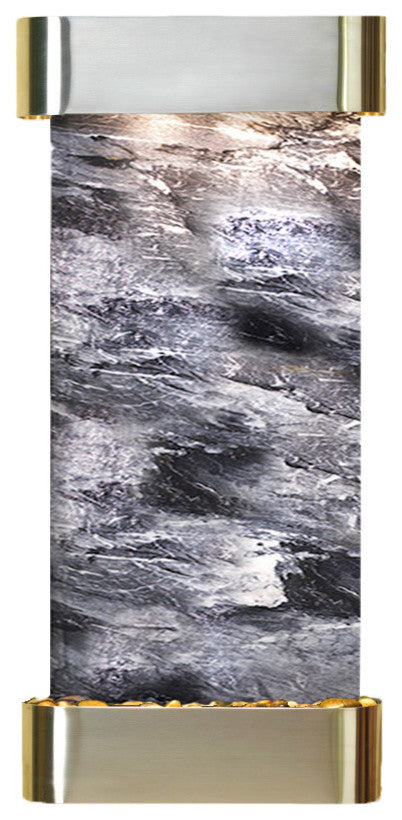 Cascade Springs Water Fountain, Black Spider Marble, Stainless Steel, Round
