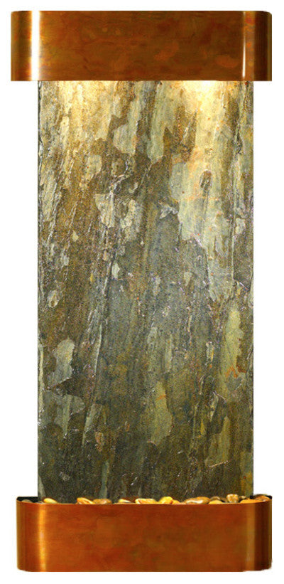 Cascade Springs Water Fountain, Natural Green Slate, Rustic Copper, Round