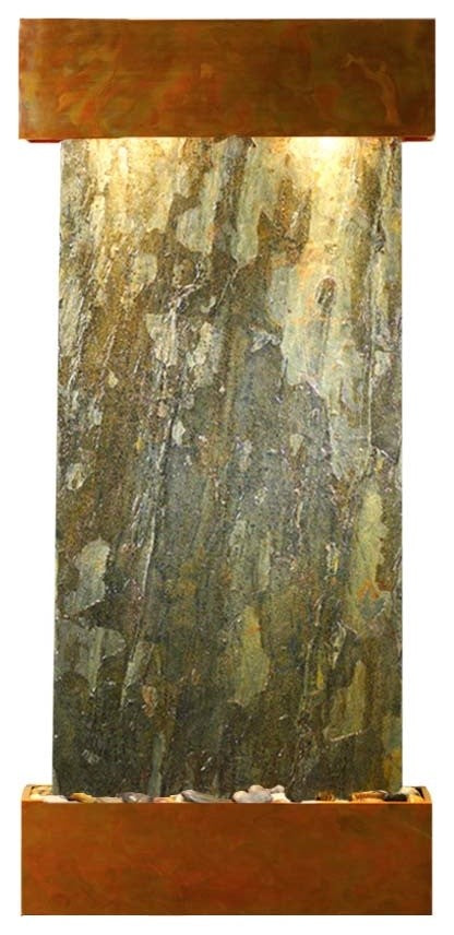 Cascade Springs Water Fountain, Natural Green Slate, Rustic Copper, Square
