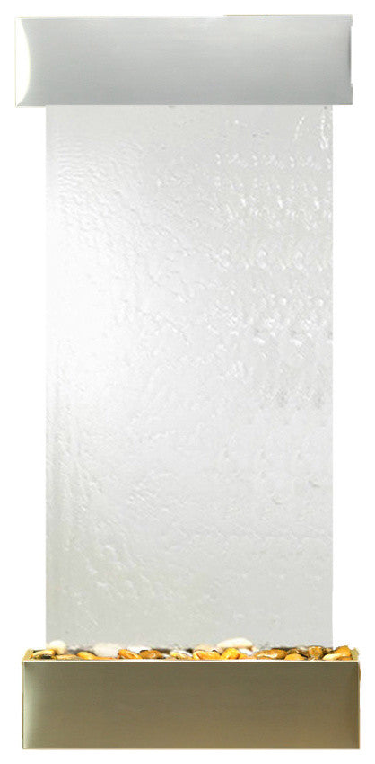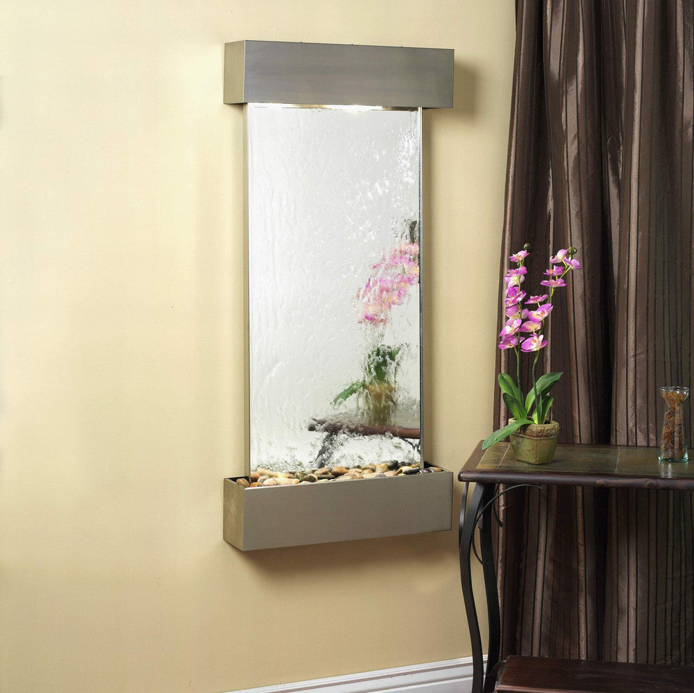 Cascade Springs Water Fountain, Silver Mirror, Stainless Steel, Square