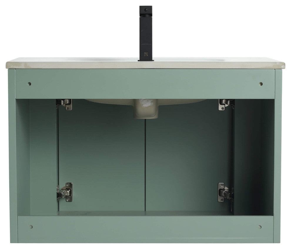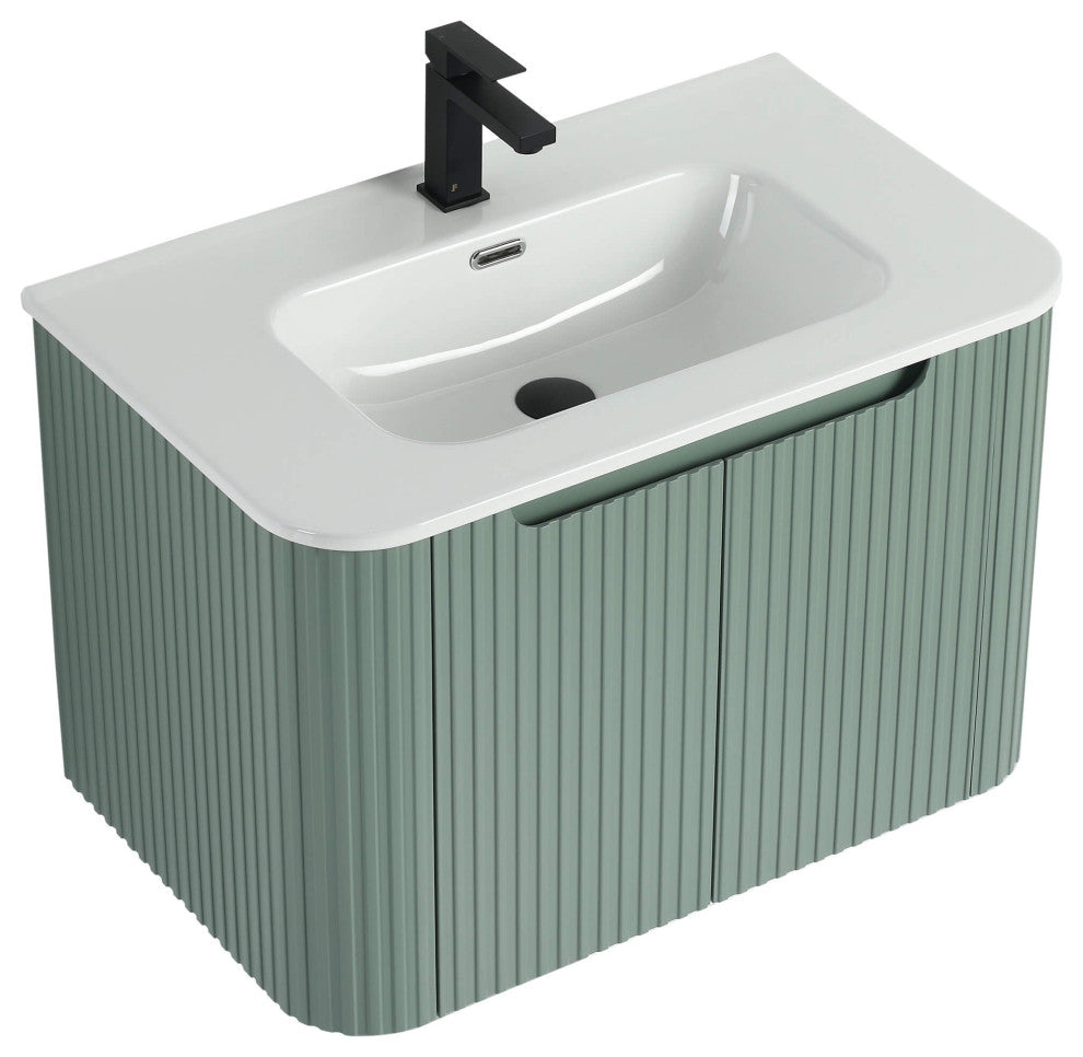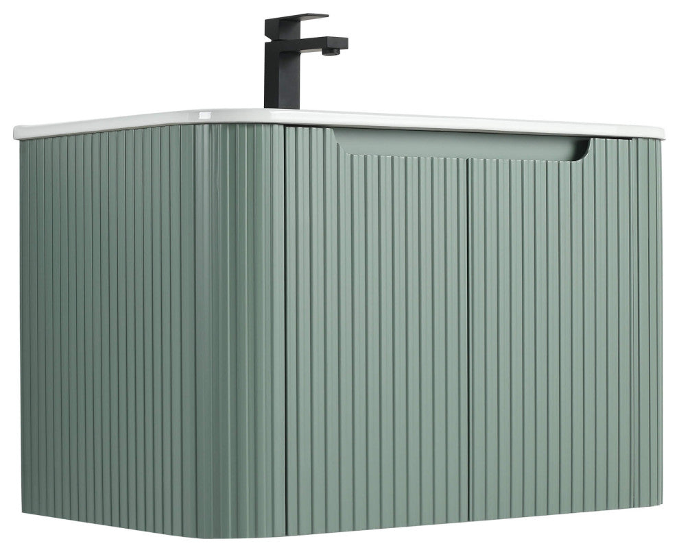 Caskvalley Bath Vanity, Straight Fluted Design Sink Included, Mint Green, 30"