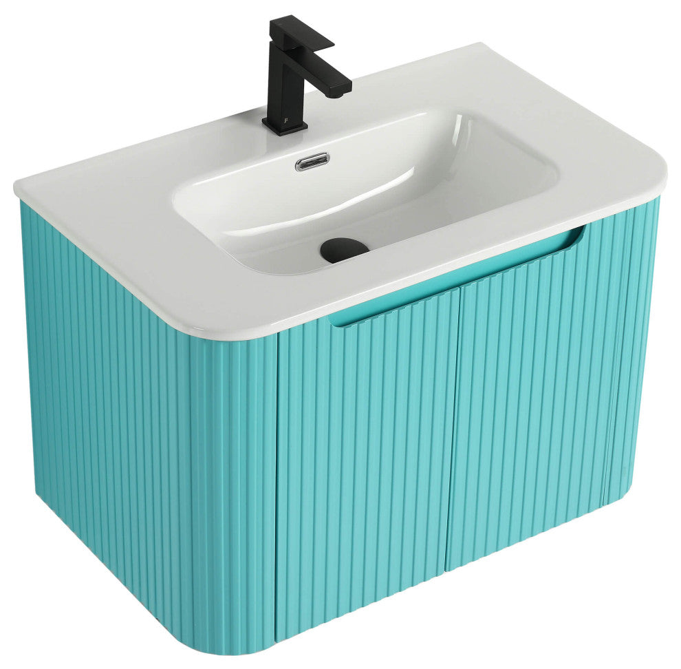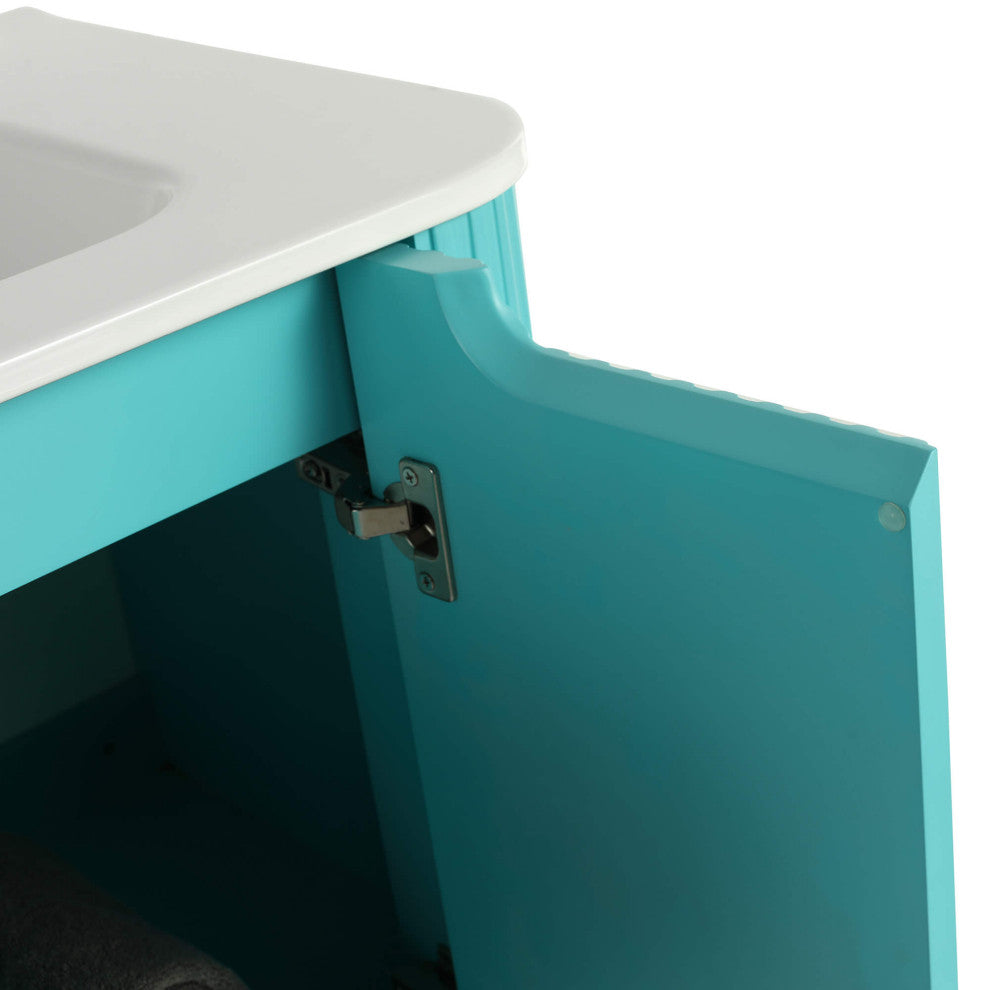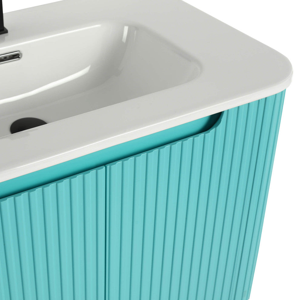 Caskvalley Bath Vanity, Straight Fluted Design Sink Included, Tiffany Blue, 30"