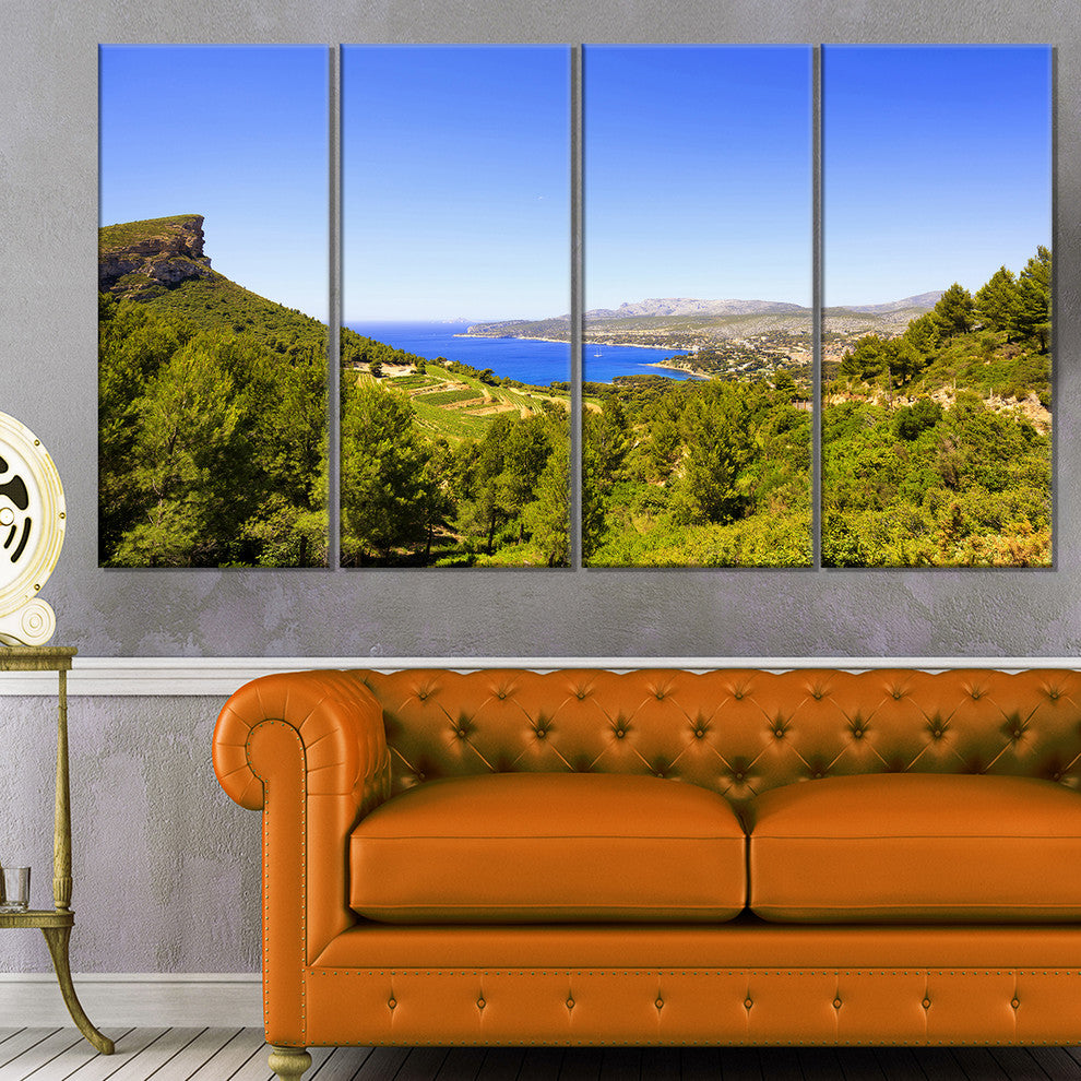 "Cassis Bay From Route Des Cretes" Landscape Wall Art Print, 4 Panels, 48"x28"