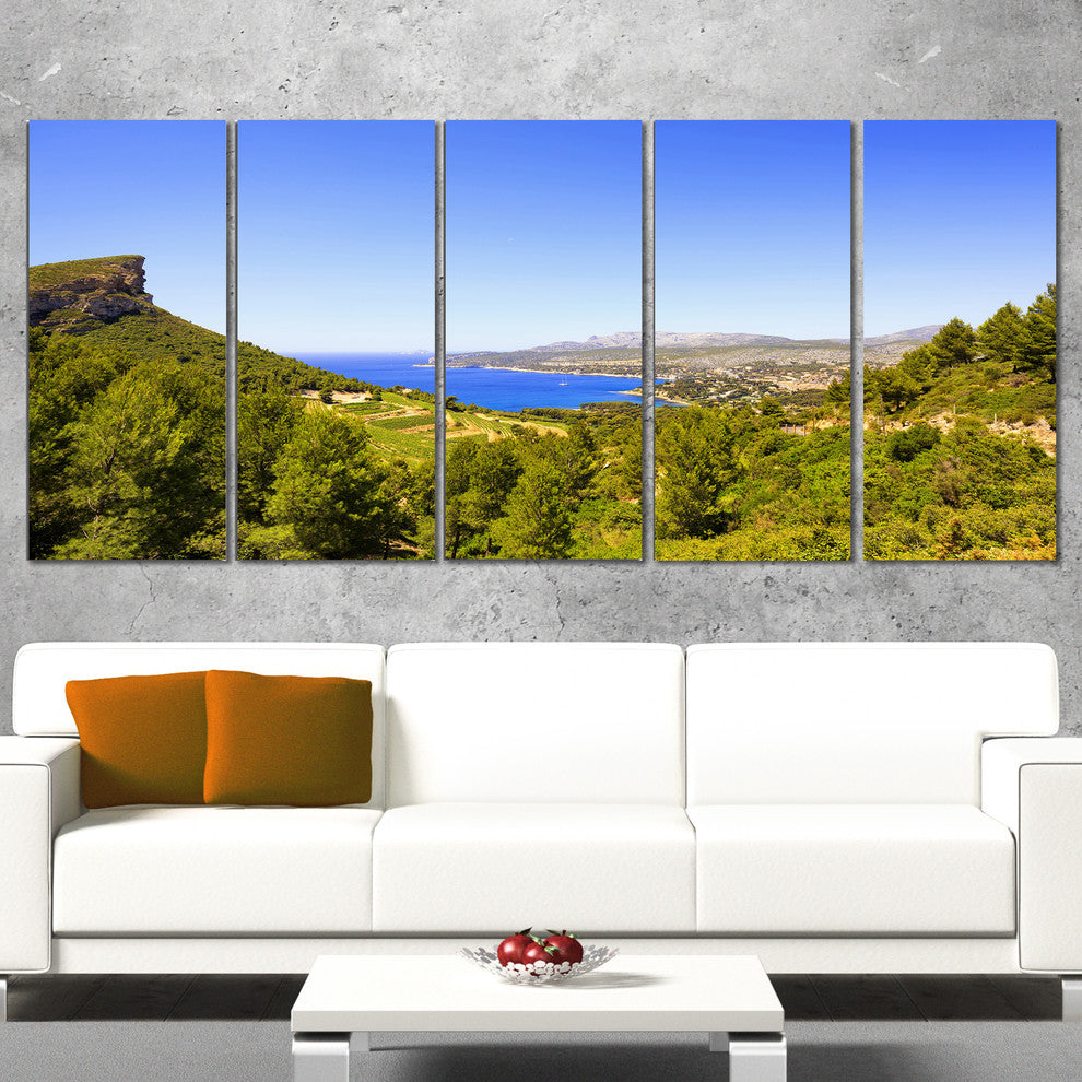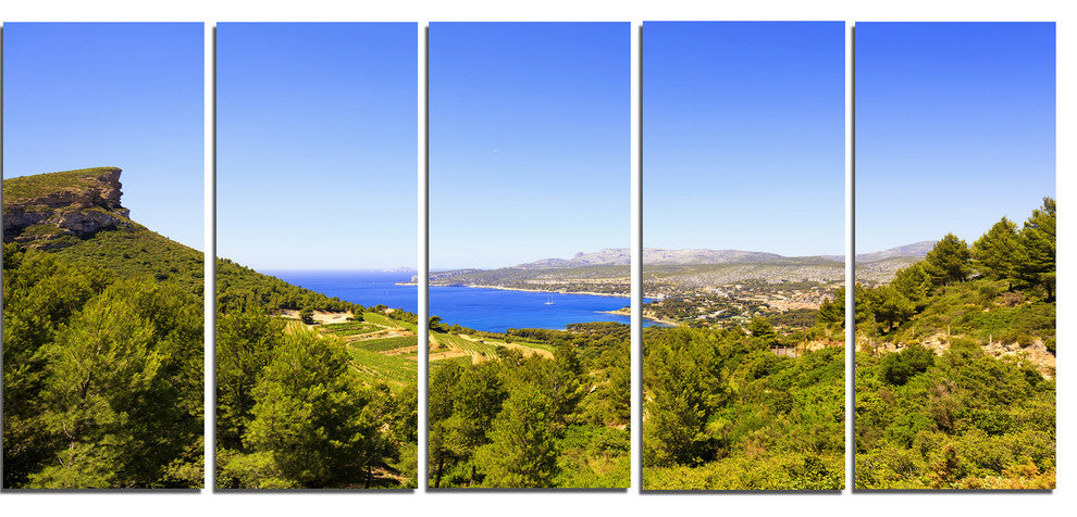 "Cassis Bay From Route Des Cretes" Landscape Wall Art Print, 5 Panels, 60"x28"