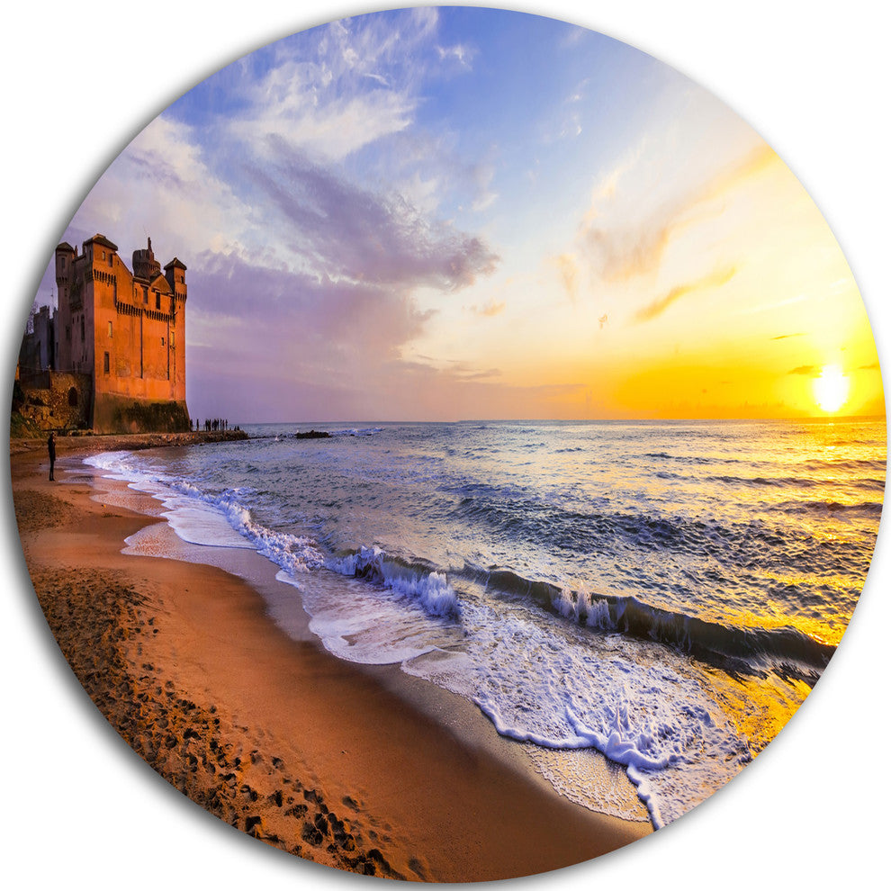 Castle Santa Severa Over Sunset Italy, Seascape Disc Metal Artwork, 23"