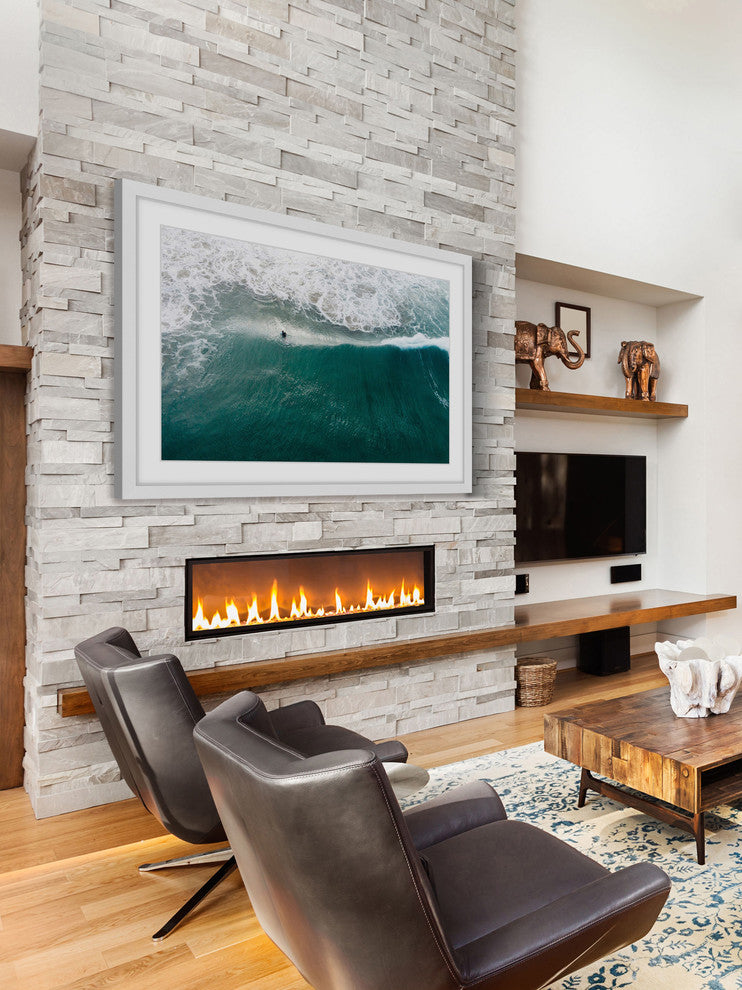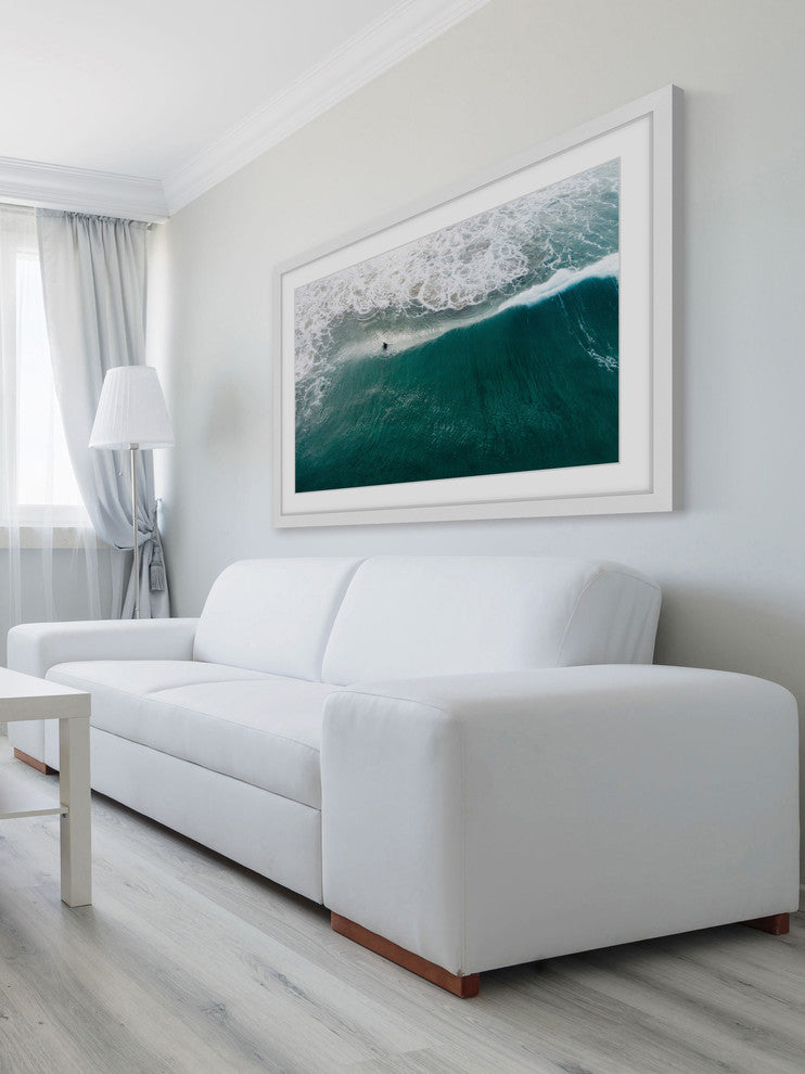 "Catch That Wave" Framed Print by Karolis Janulis features vivid tones and supple artistry. Mounted in a gorgeous frame, this 36 inch wide by 24 inch tall piece will be an exceptional addition to any room. Top quality Giclee print on high resolution Archive Paper Artwork by Karolis Janulis Professionally framed and mounted on acid free archive matte High quality durable non-warping frame Arrives ready to hang Includes a certificate of authenticity Made in the USA