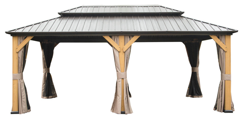 Cedar Wood Gazebo with Galvanized Steel Double Roof, 12'x20'