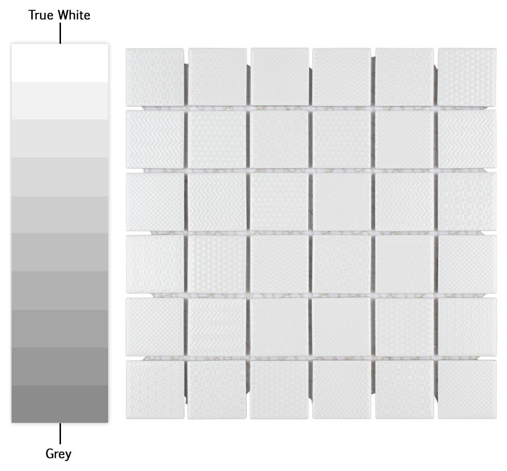 Our Celadon White Porcelain Mosaic Tile features a contemporary look and adds a touch of elegance to any space. This snow white tile features square pieces with various patterns and a high-sheen finish on its surface, offering a sleek look that adds extra character to this unique tile. Its impervious and frost resistant features make this an indoor tile for both indoor and outdoor installations, including backsplashes,, bathrooms, and kitchens.This tile is available in five print variations randomly scattered throughout each case. Tile is the better choice for your space. This tile is made from natural ingredients, making it a healthy choice as it is free from allergens, VOCs, formaldehyde and PVC.