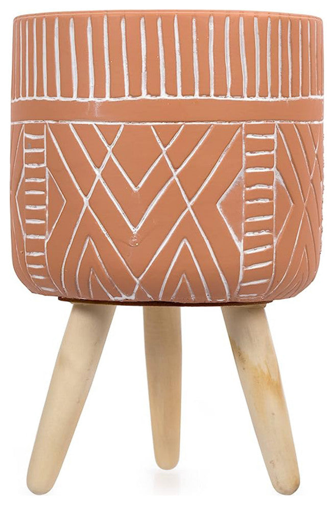 Ceramic Terracotta Planter with Wooden Legs, 5.5"D x 7"H, Orange