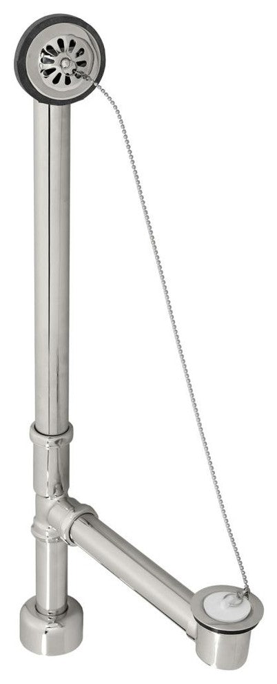 Westbrass fully exposed chain and stopper drain assembly is completely finished for exposed, classic bathtubs. Bath tub drain shoe is closed by a rubber stopper. Two-hole trip lever face plate mounts with two (2) 1/4 in.-20 x 1-1/2 in. plated brass screws (D329) and fixes a chained stopper closure.